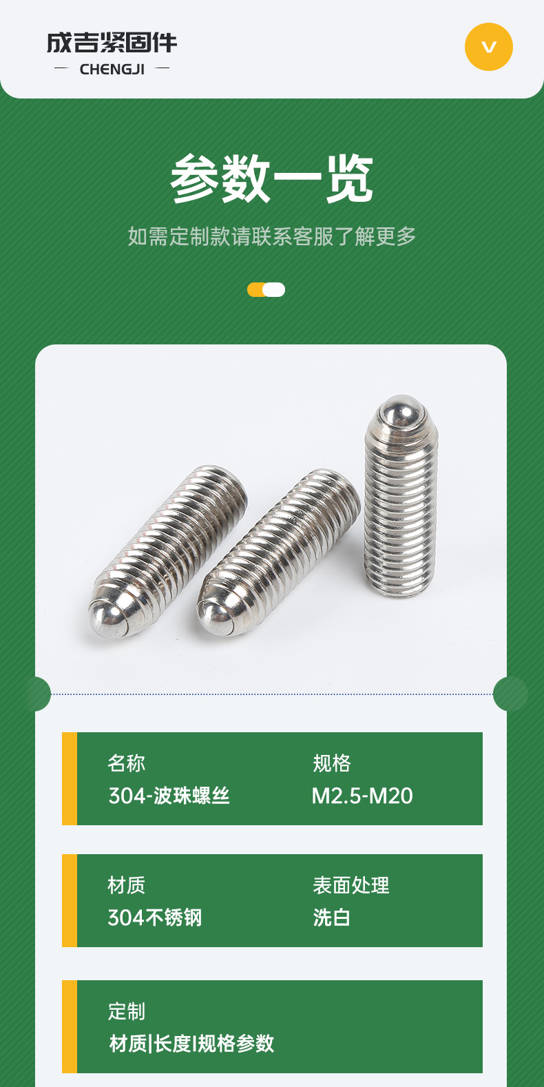 一字溝波珠ねじステンレス304波子位置決め珠固定ばね球頭パチンコ柱栓ボール