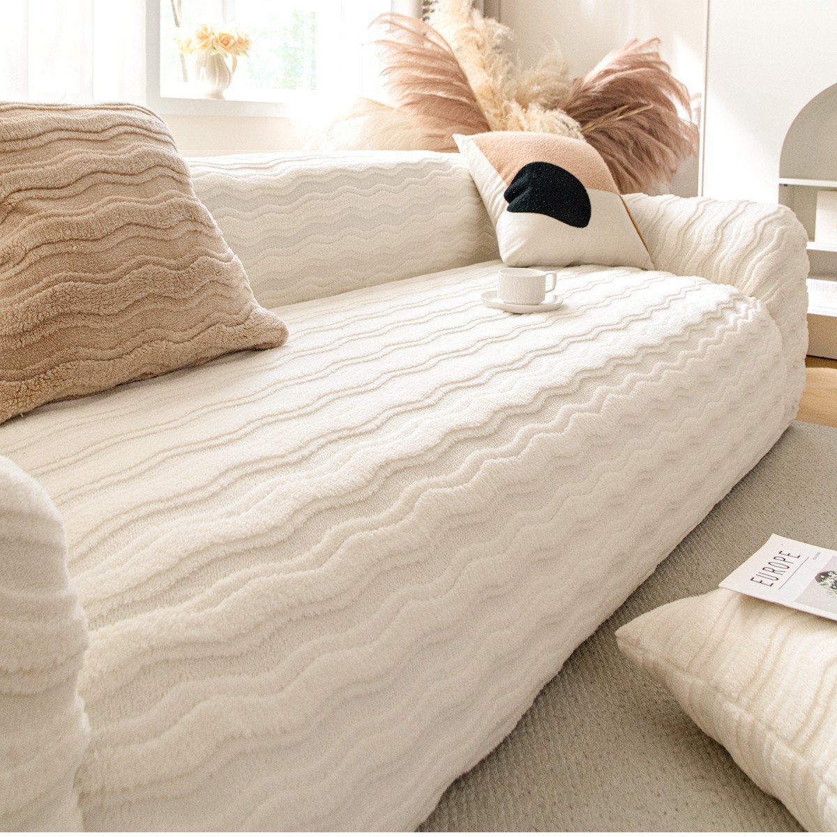 2025新款沙发套罩奶油风纯色毛绒沙发罩全包万能防尘保护布