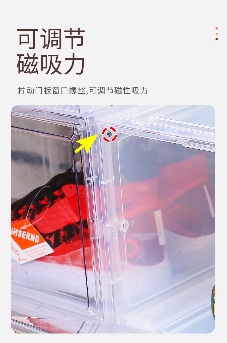 アクリル靴ケース卸売り透明厚手収納ケース家庭用収納プラスチックケース防塵防湿磁気吸引カバー
