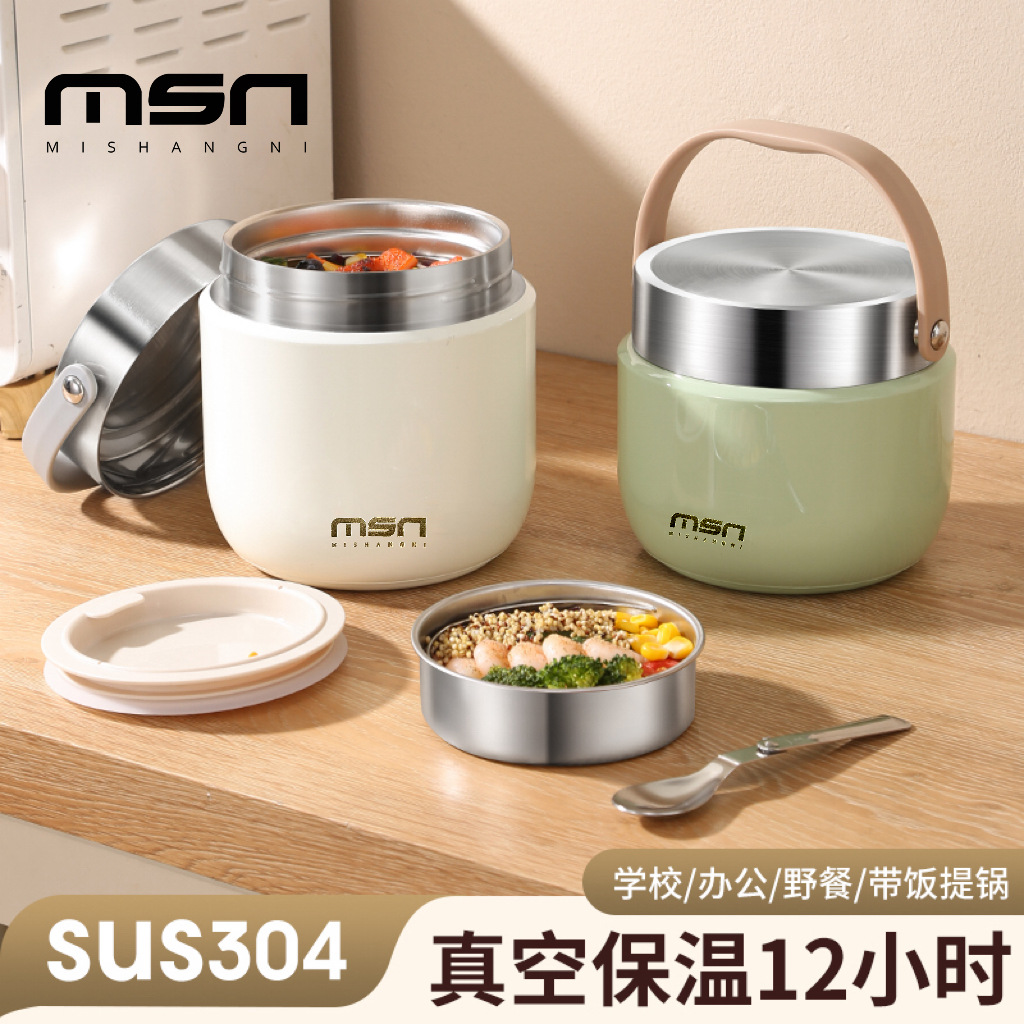 迷尚妮 墩墩304不锈钢真空提锅双层保温饭盒保温饭桶上班族便当盒