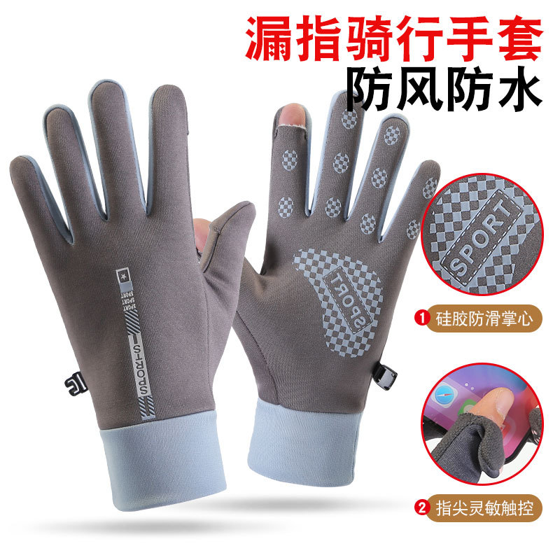 可露指骑行手套女冬季外卖骑手装备神器男摩托车保暖防寒防水防风