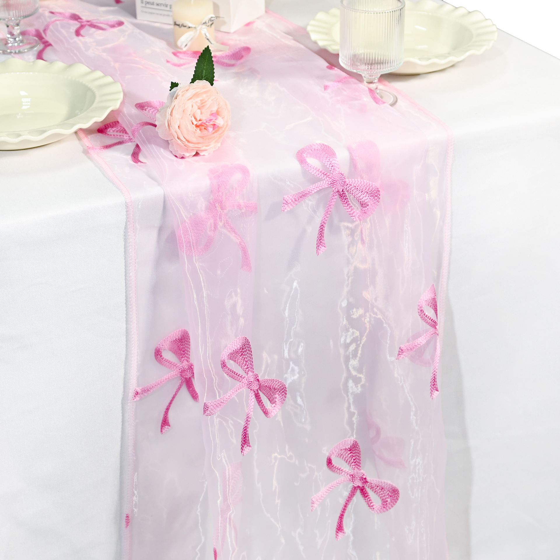 跨境粉蝴蝶结刺绣桌旗婚礼节日生日派对家居装饰桌旗