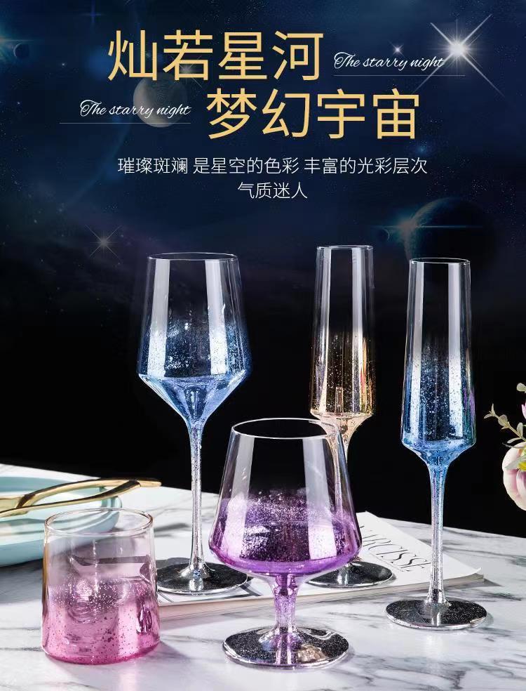 星空無鉛水晶ガラス高足カップ創意家庭用グラス高顔値シャンパンカップネット赤カクテルカップ