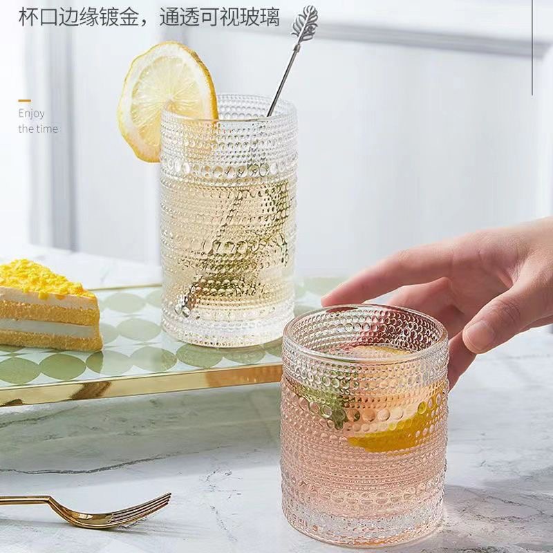 軽豪華シンプルビーズポイントレリーフグラスins高颜値大容量カップ家庭用耐高温爆金カップ