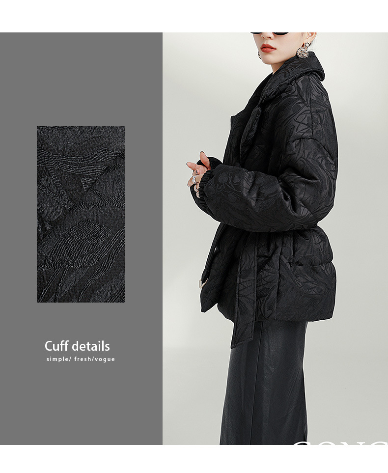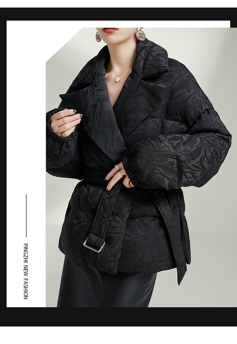 花の暗い紋様のハイエンドのガチョウの綿毛の服は腰の白いガチョウの綿毛の短い金の平湖のダウンジャケットの女性の高級の婦人服の黒色を収めます。