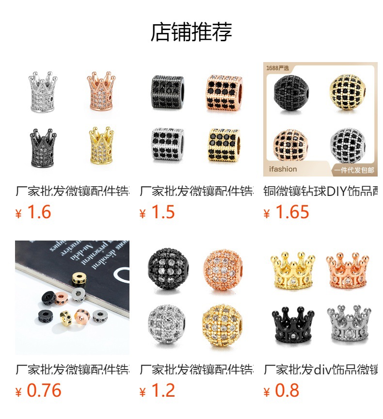 メーカー卸売diyアクセサリーミニチュアアクセサリークラウンジュエリージルコンDIYビーズブレスレットビーズアクセサリー卸売