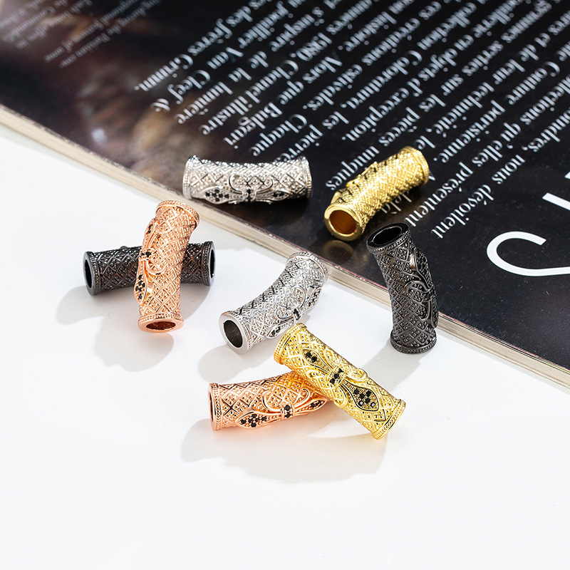 欧美跨境18K微镶锆石半镯弯管大孔套管diy项链毛衣链管套饰品配件