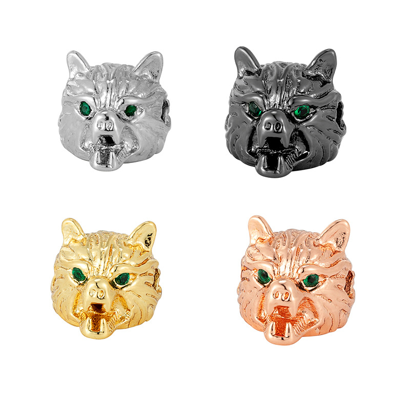 メーカーの卸売りのミニチュアの部品のジルコン欧米のミニチュアの男性の金の緑の目の狼の頭のアクセサリーの部品の卸売り