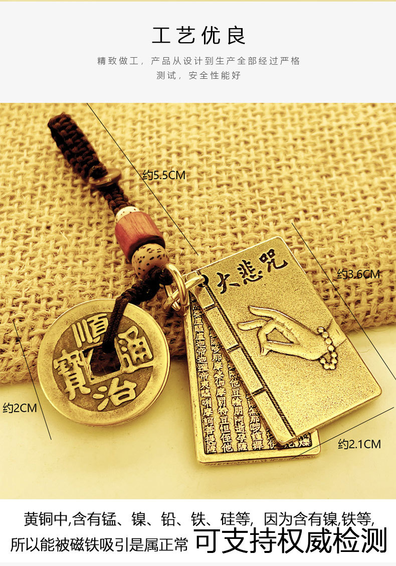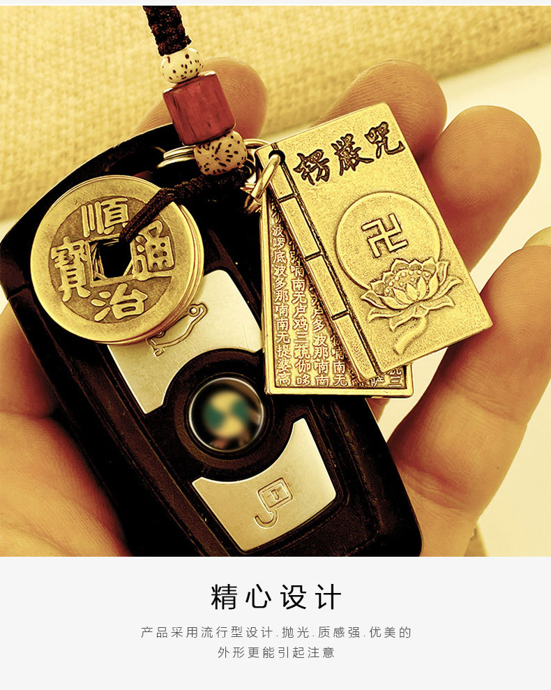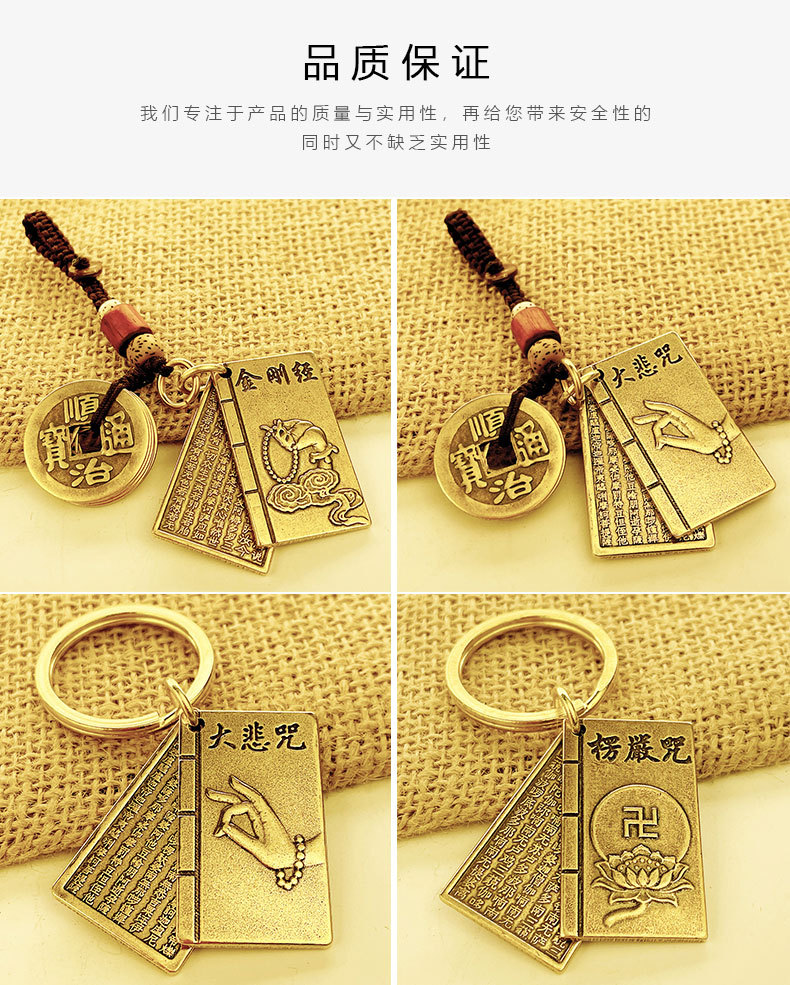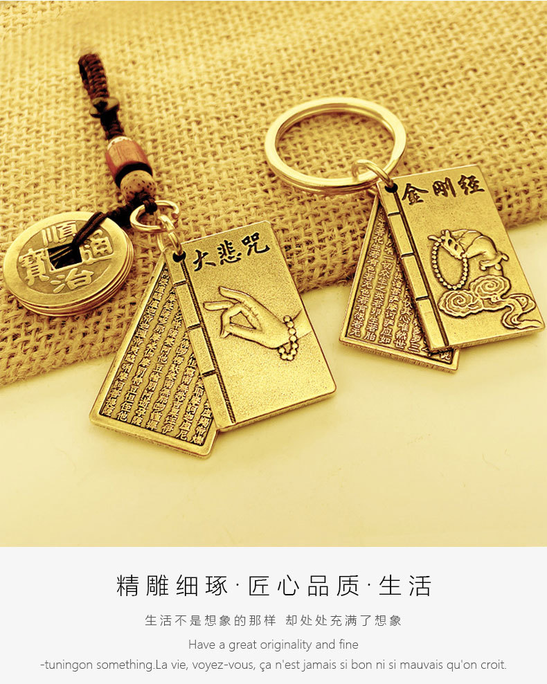キーチェーン金剛心経創意厳鍵金剛経鍵ボタン呪い金黄銅復古鍵大悲五