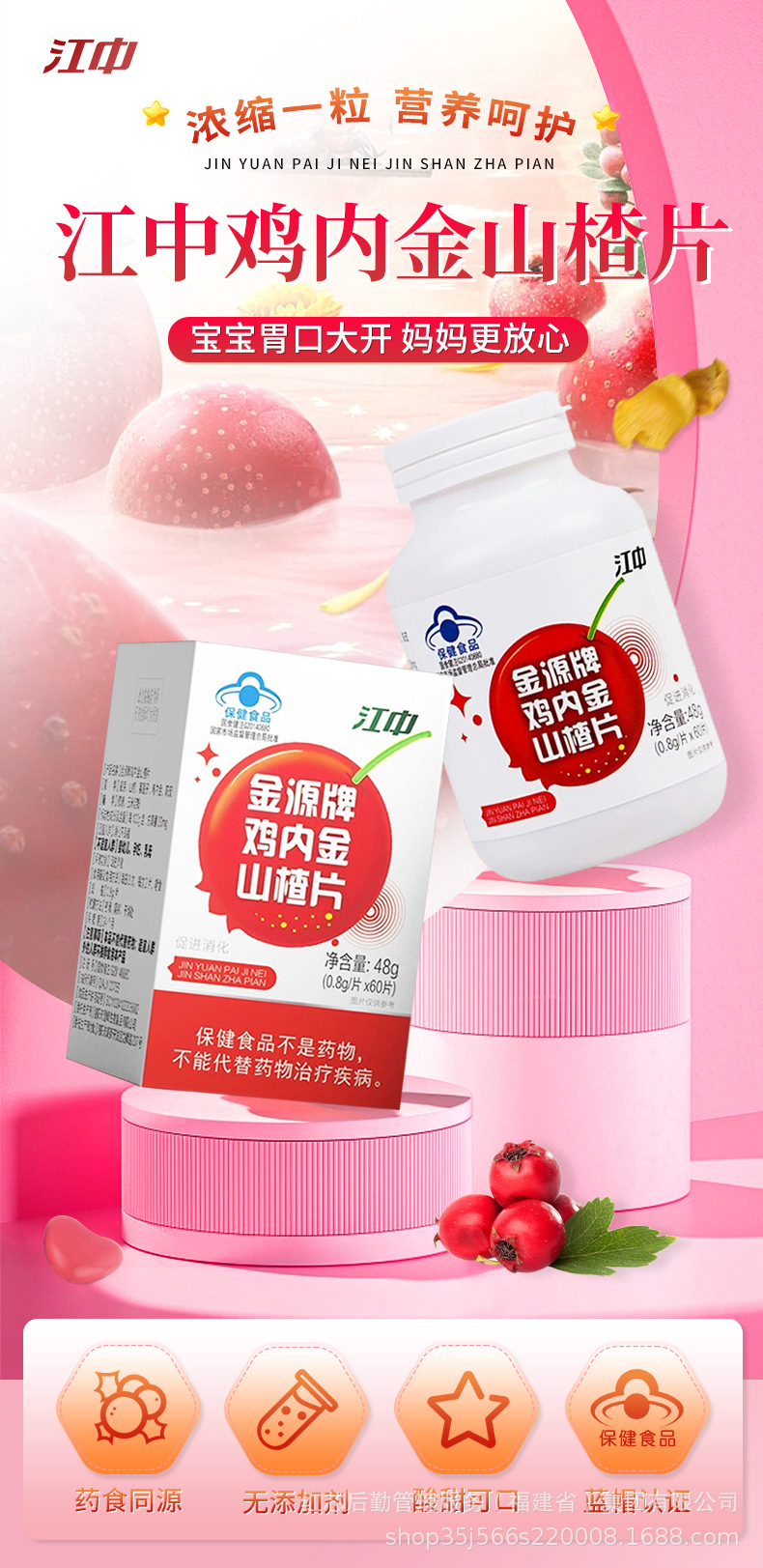 仕様 江中金源牌鶏内金山サンザシ片48g(0.8g/片 * 60片/瓶)