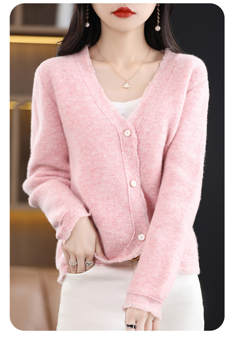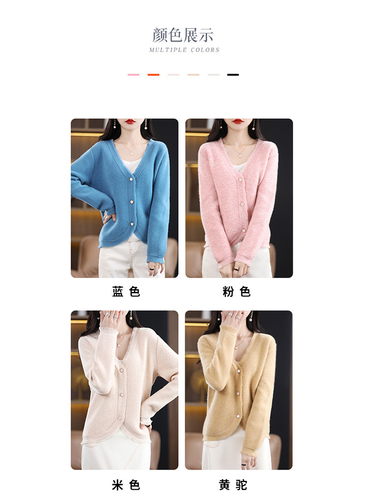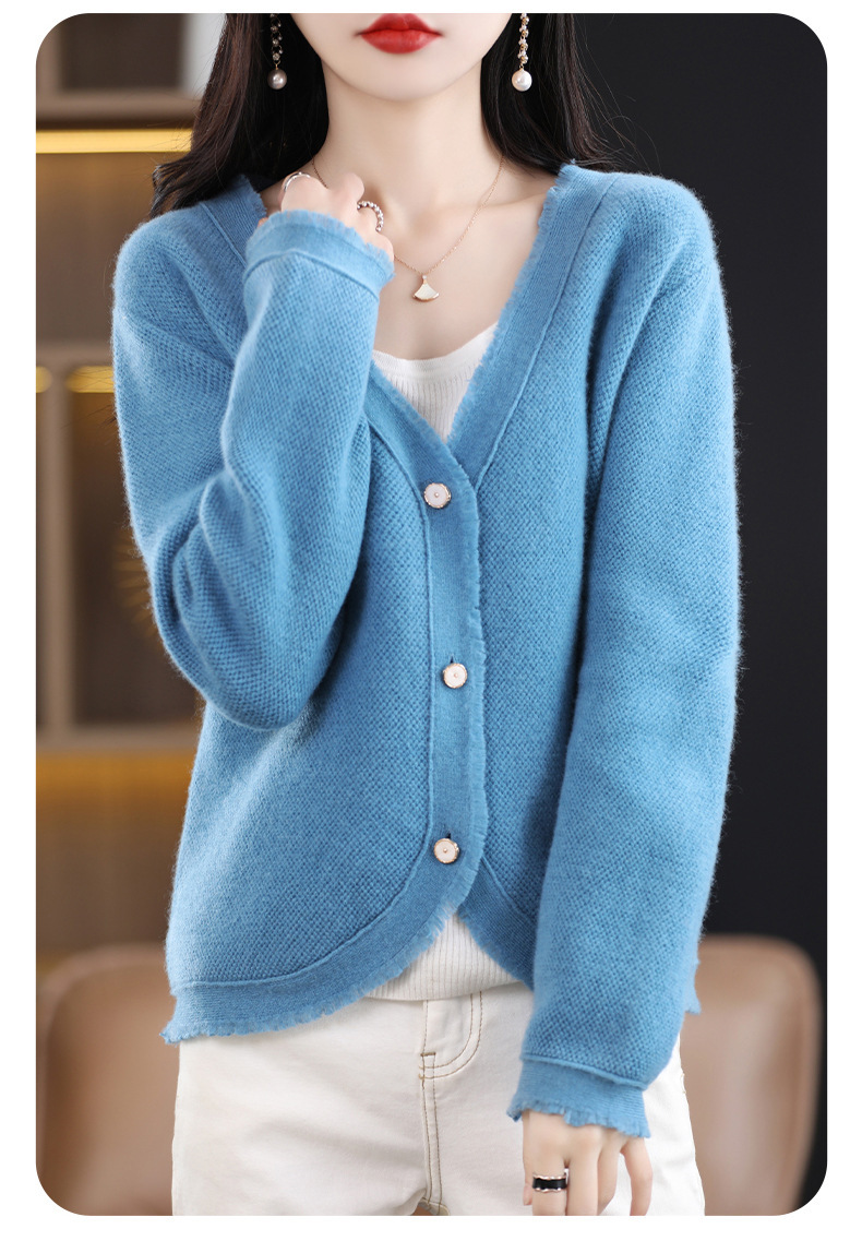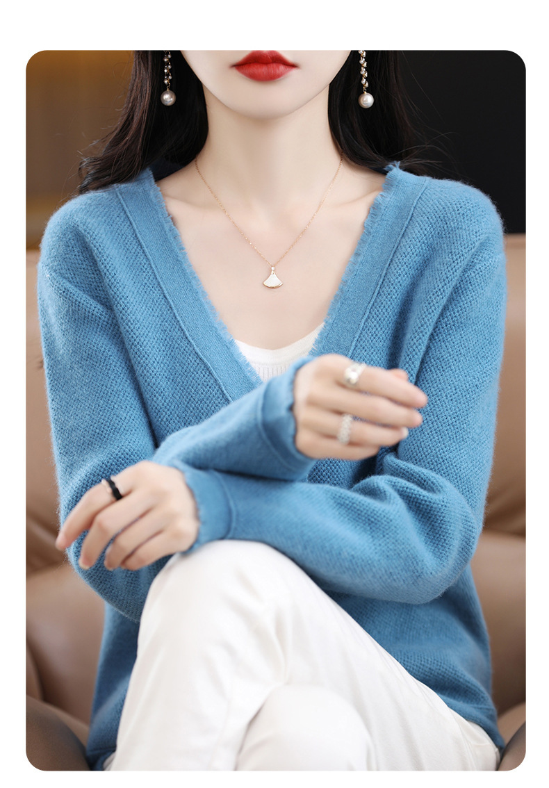 2025 春と秋の新しい女性の韓国トップス女性のソリッドカラーのファッション V ネックハイエンドニットセーターカーディガンショート