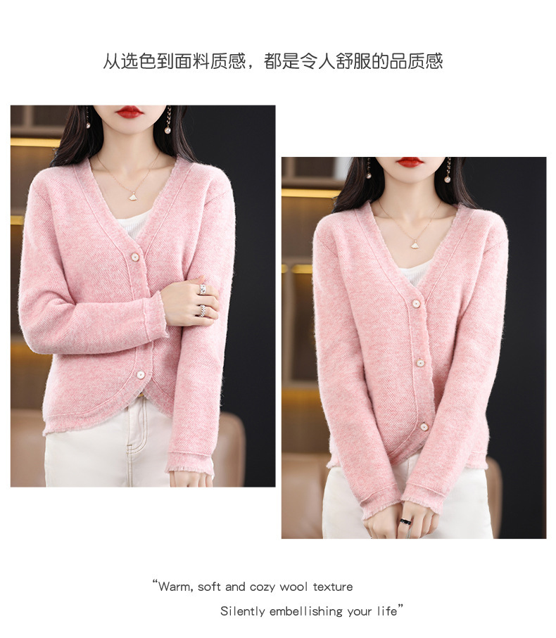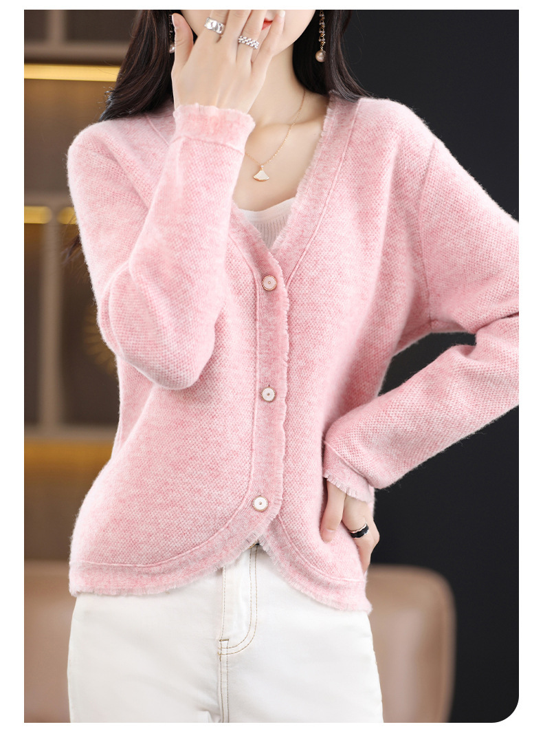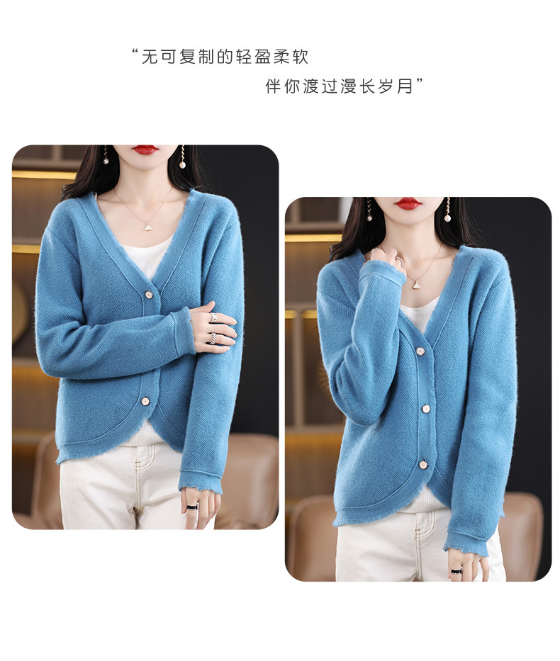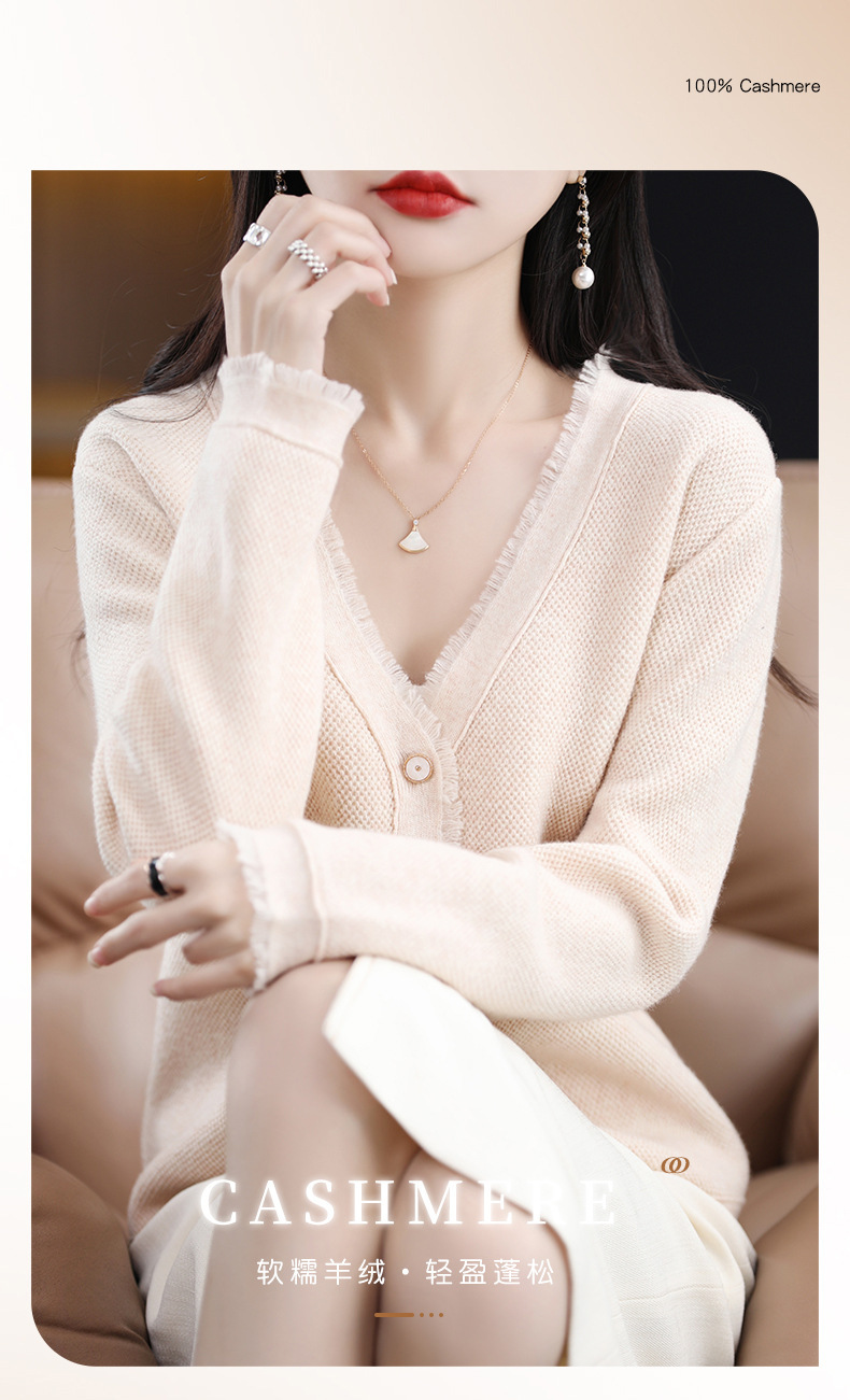 2025 春と秋の新しい女性の韓国トップス女性のソリッドカラーのファッション V ネックハイエンドニットセーターカーディガンショート