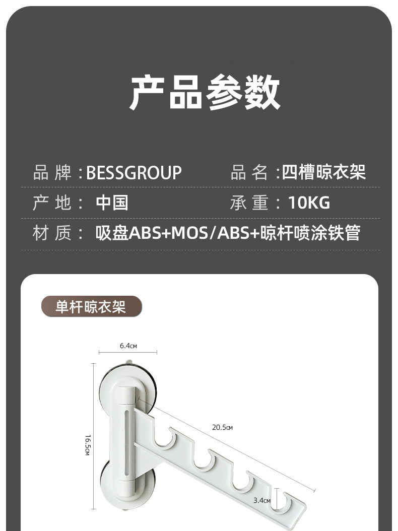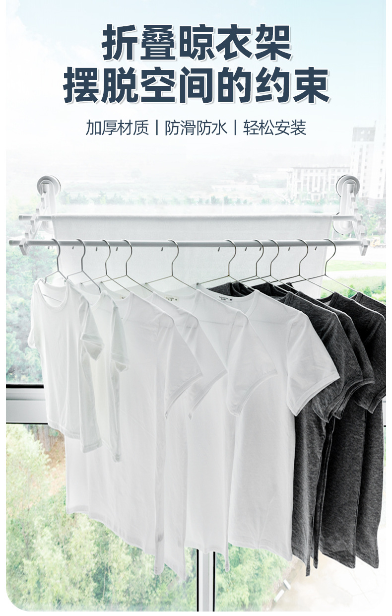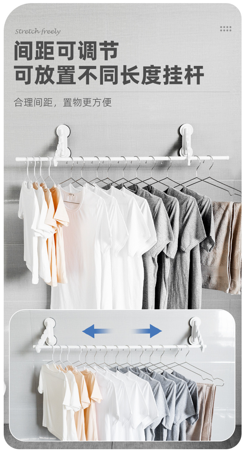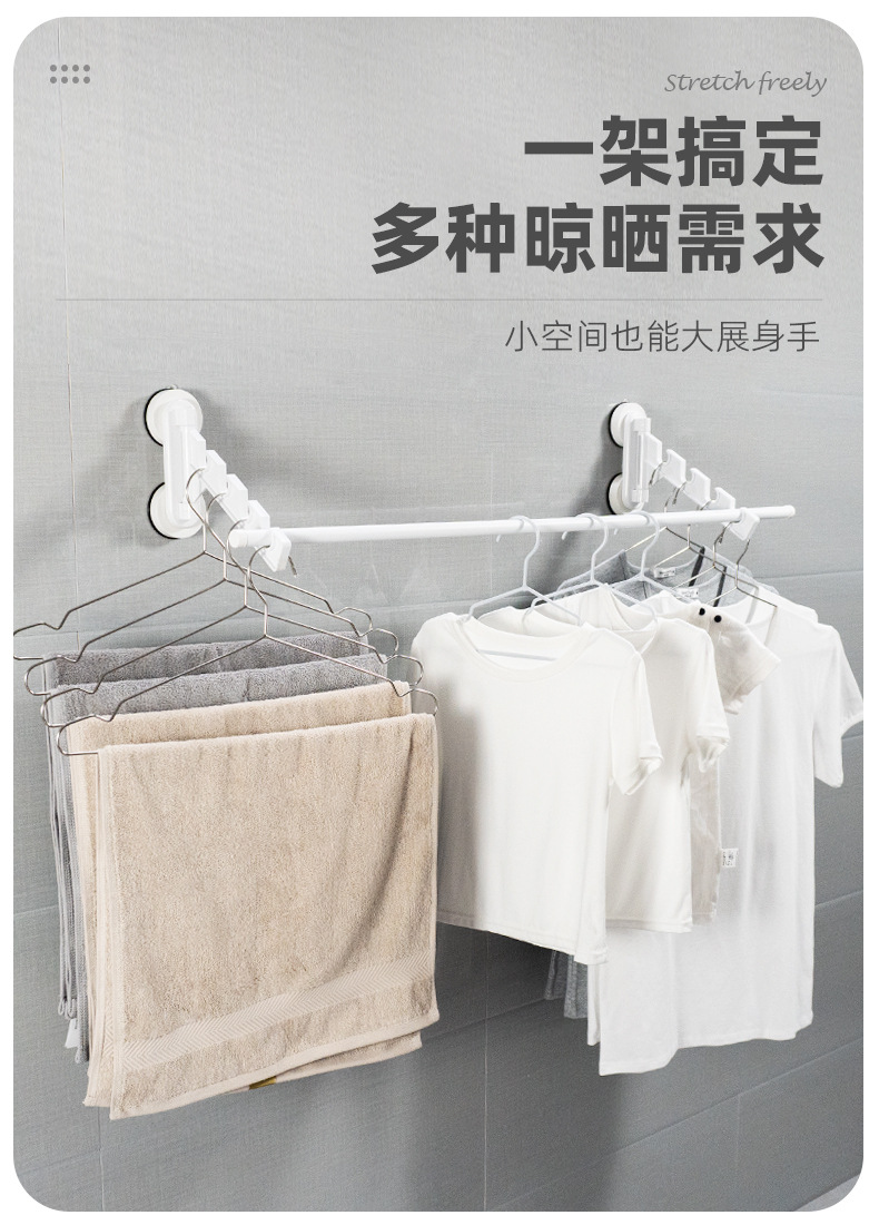 ベランダ折りたたみ物干しハンガー壁挂け干しバーアルミ合金伸縮物干しバー掛け布団穴なし吸盤式