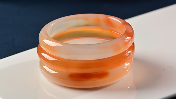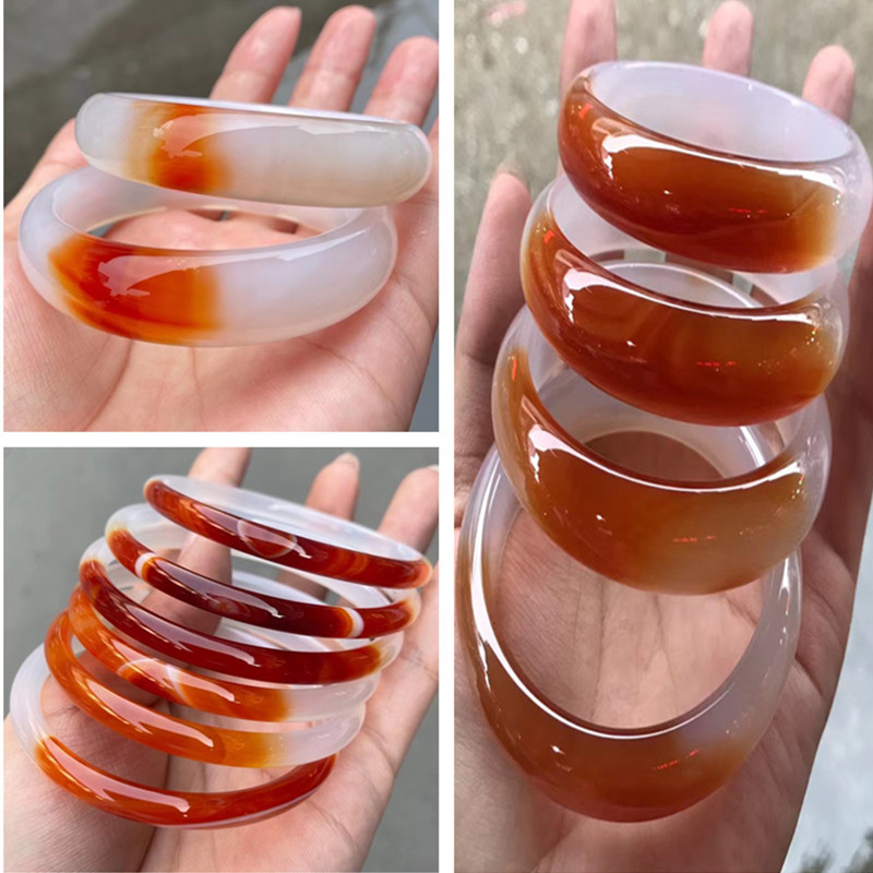 卸売りの半分の壁の江山の赤い瑪瑙のブレスレットのグラデーションは花の薄い赤い玉髄の女性の美人の復古の玉の腕輪を漂わせます。