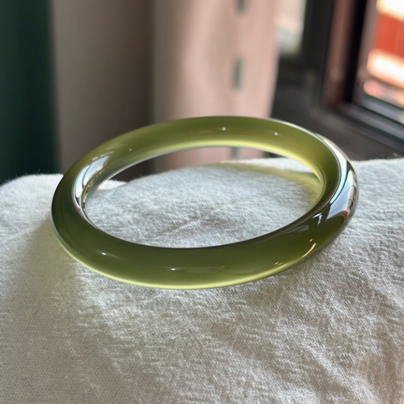 Qingshui クリソプレーズ ブレスレット レディース プレーン サークル 薄い ラウンド バー ブレスレット オイル グリーン ジングル ベル