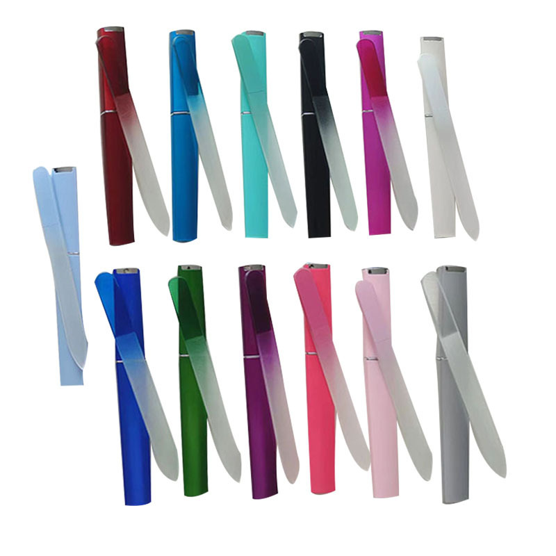 カラー筒にガラスやすりを入れて、14cmグラデーション色のガラス爪やすりに筒を入れて、ABS筒にガラスやすりを入れます。