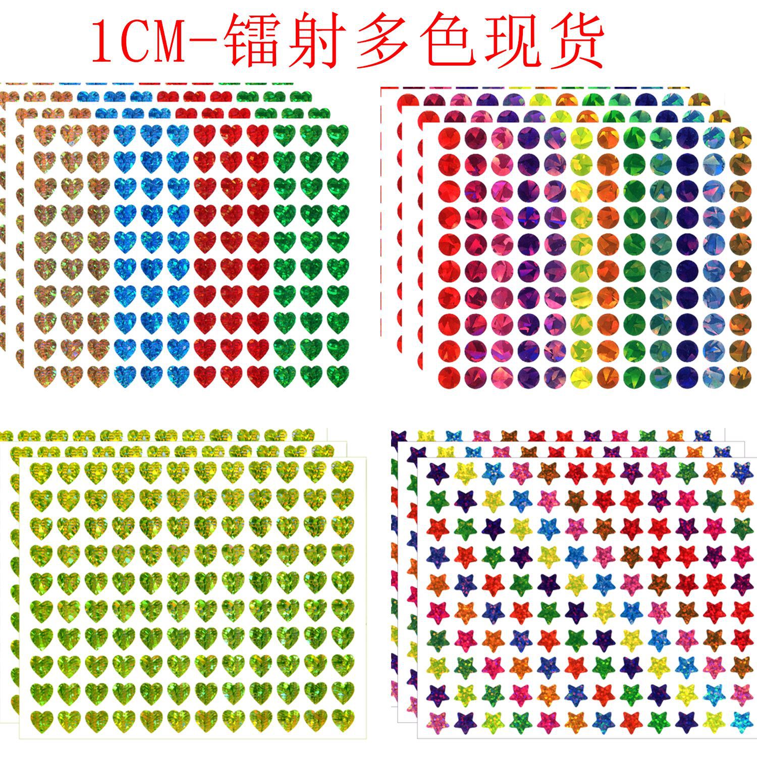 1200枚/0.4インチ 光沢のある箔製ハート型丸型五芒星ステッカー 光沢のあるホログラフィックレーザー カラフルレーザー
