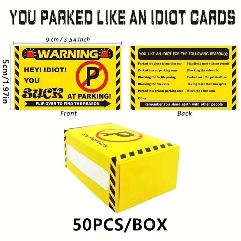 50枚、駐車違反カード「あなたは馬鹿カードのように駐車します」面白い駐車違反カード