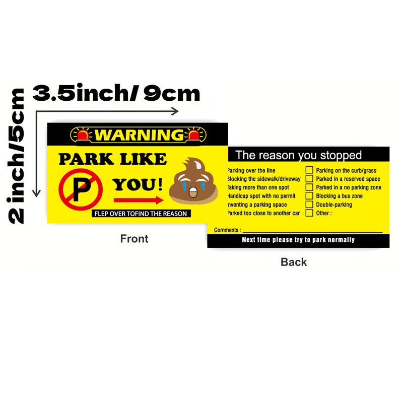50枚、3.5*2.1インチ、ユーモア駐車カード、面白い駐車カード、駐車注意カード