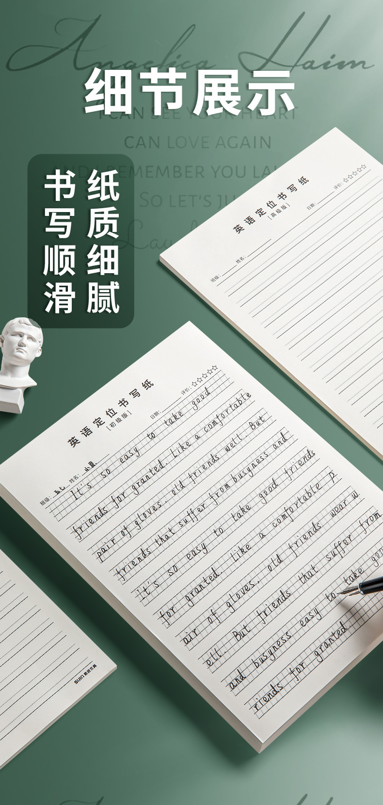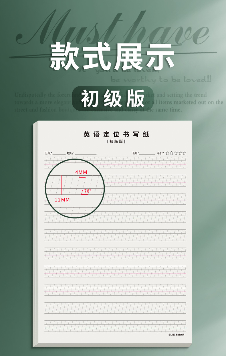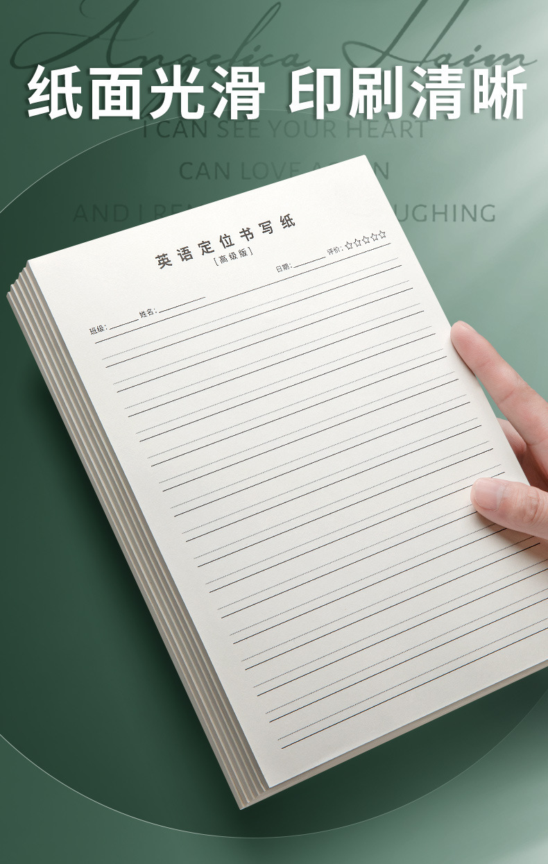 英語の位置付けを考えて紙を書いて練習紙の学生を卸売りして英語の原稿用紙で50枚の作業ノートを厚くします。