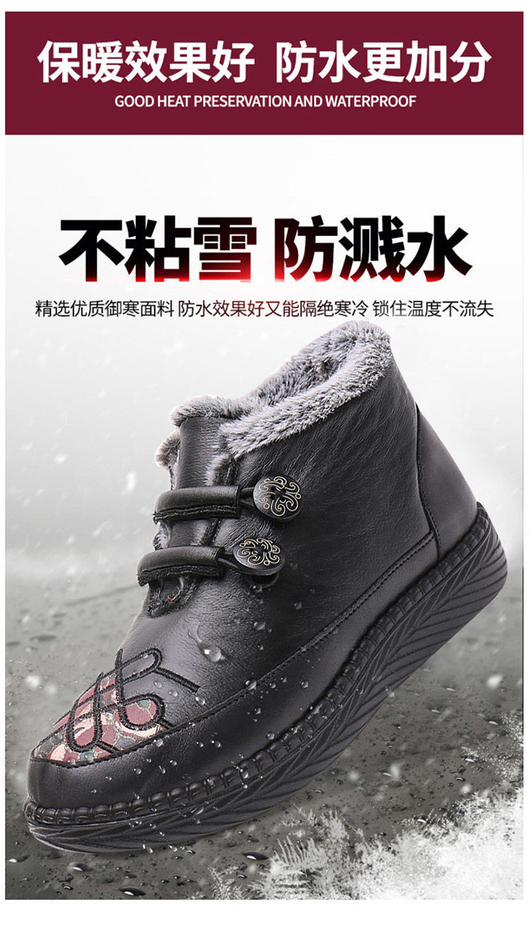 ママの靴、古い北京の女性用綿靴、厚くて暖かいおばあちゃんの靴、防水、滑り止め、ハイヒール、柔らかい底の高齢者用スノーブーツ