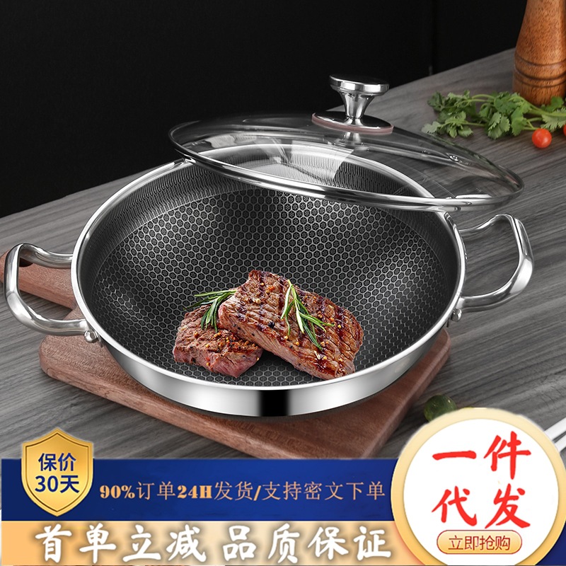 316ステンレス両面スクリーン炒め鍋蜂の巣の底にコーティングされていない炒め鍋家庭用ガス電磁炉鍋器具