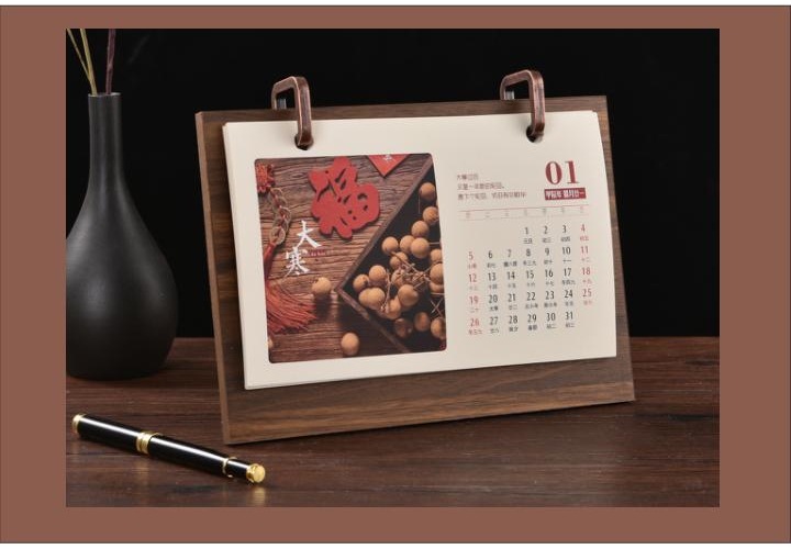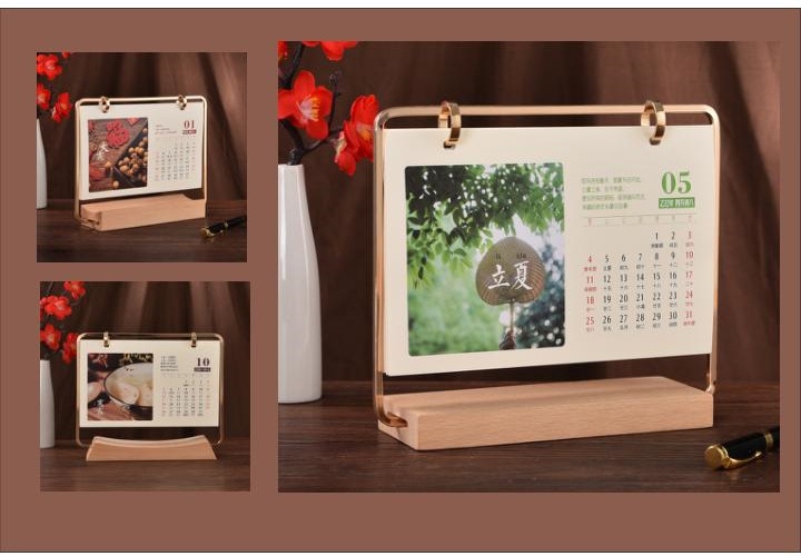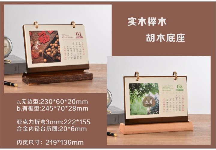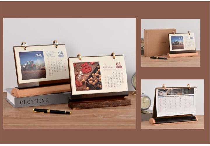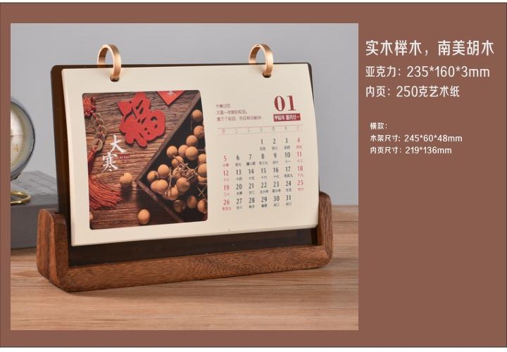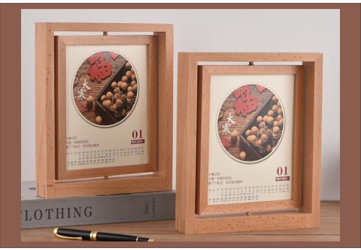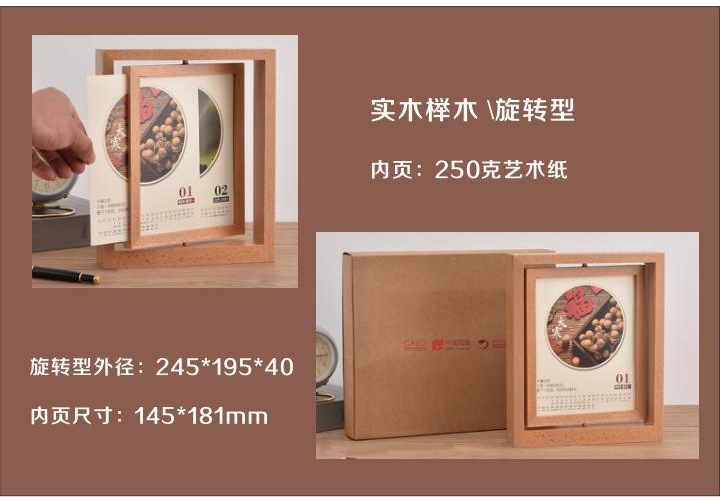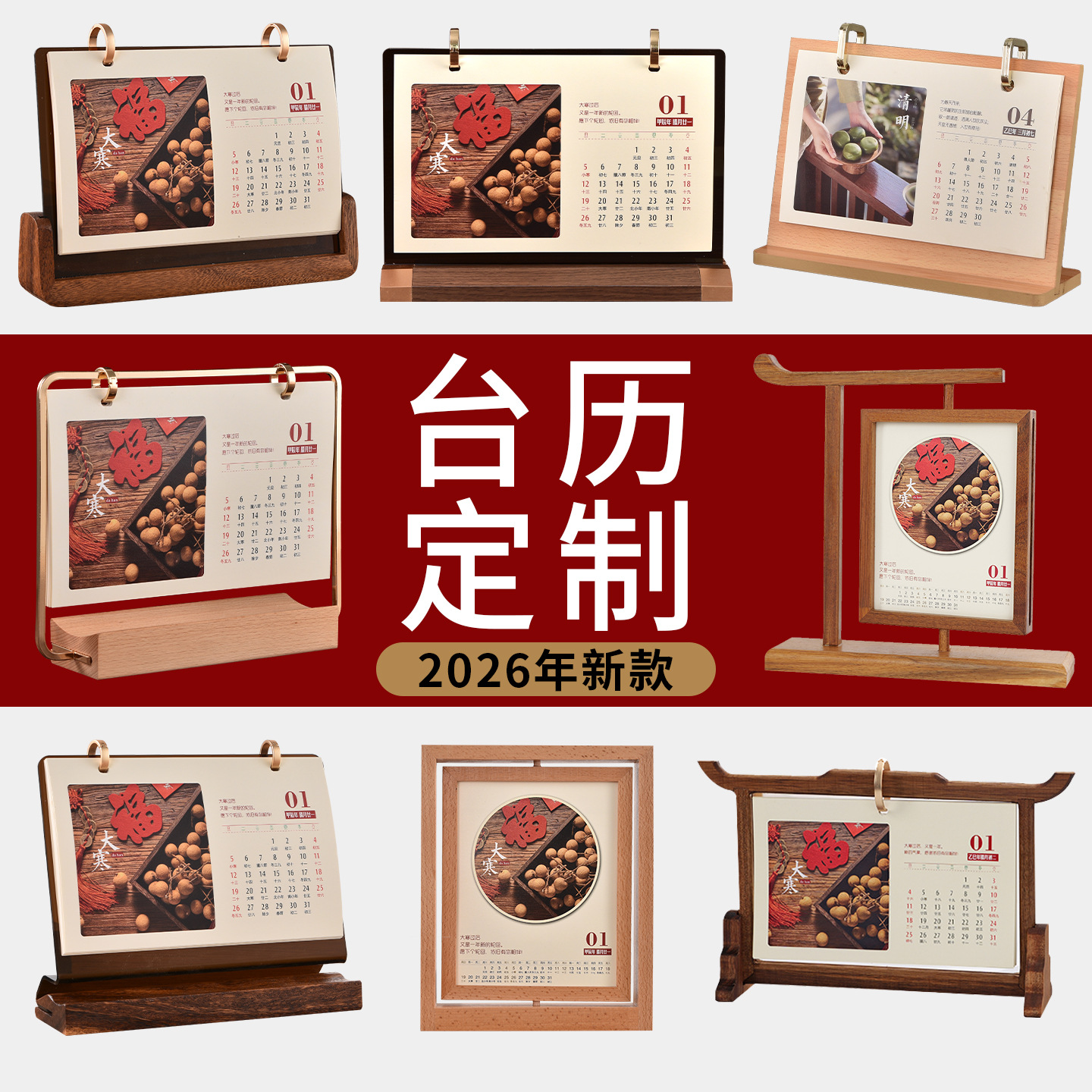2026中式国风旋转台历定制相框高端日历面精美摆件可印刷定做LOGO