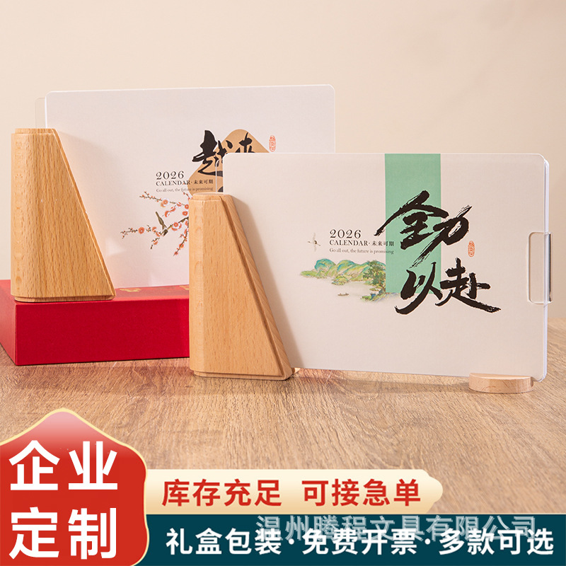 创意新春台历定制2026马年简约实木底座日历企业办公桌面装饰摆件