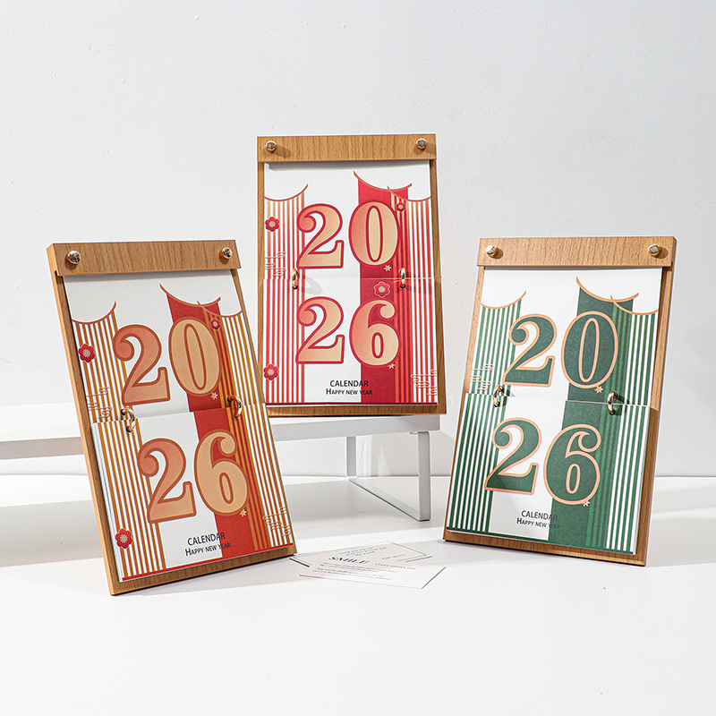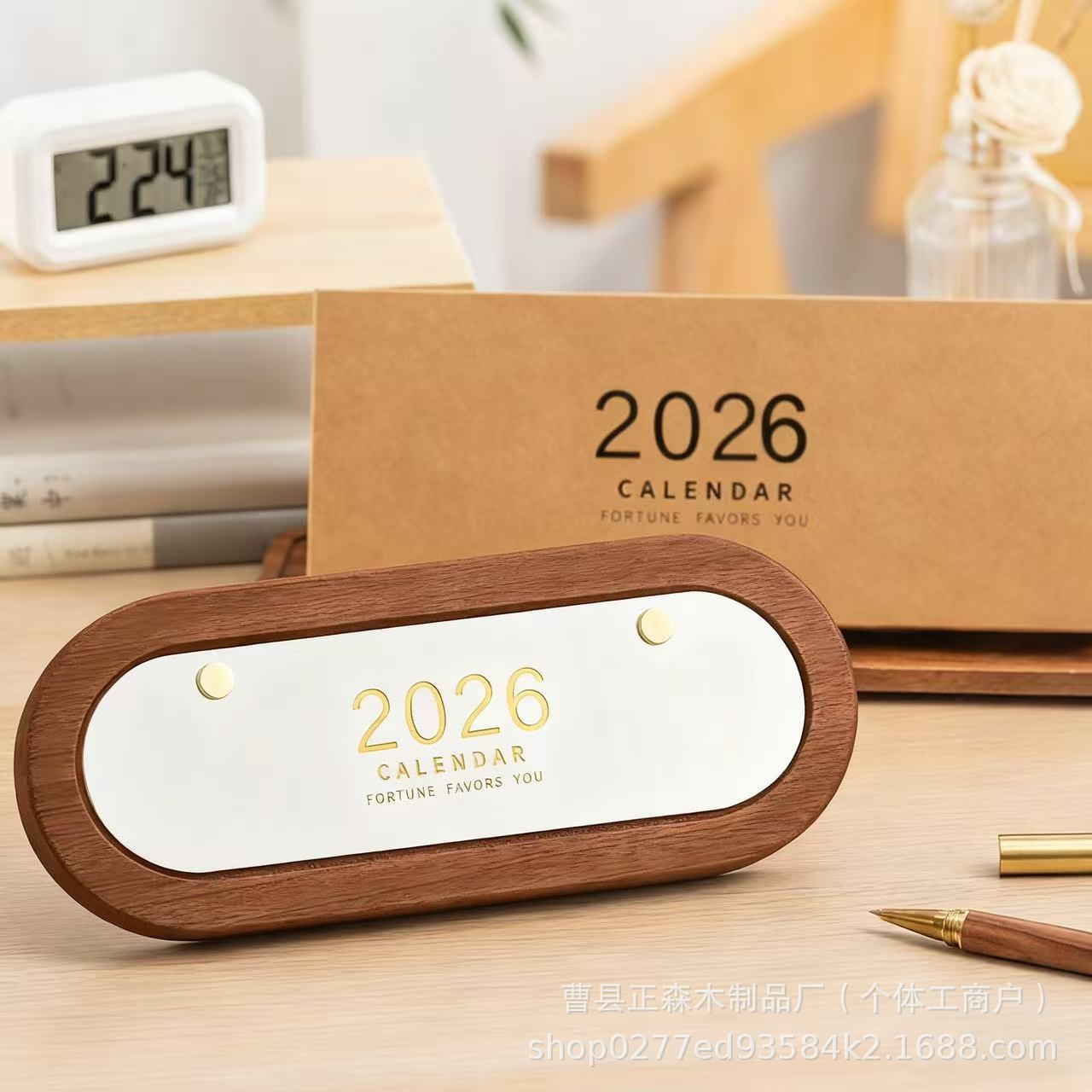 2026年新作木製卓上カレンダー レトロ北欧風 デスクトップシンプルアートカレンダー ビジネスギフト卓上カレンダー