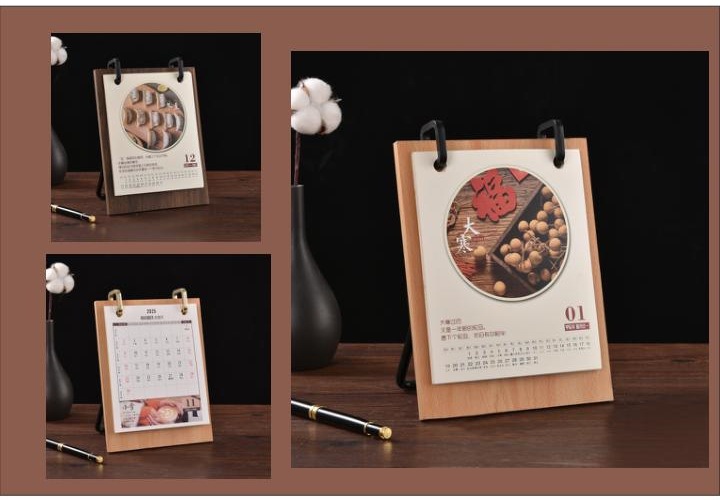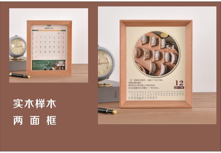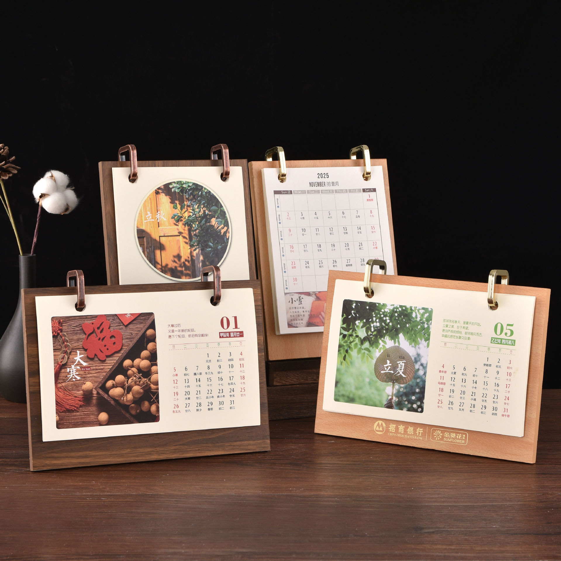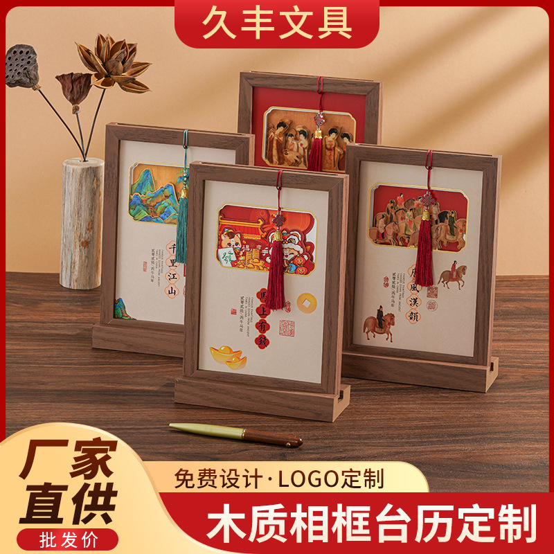 2025年蛇年木造台歴創意カレンダー会社企業広告デスクトップ置物国潮新中国式フォトフレーム
