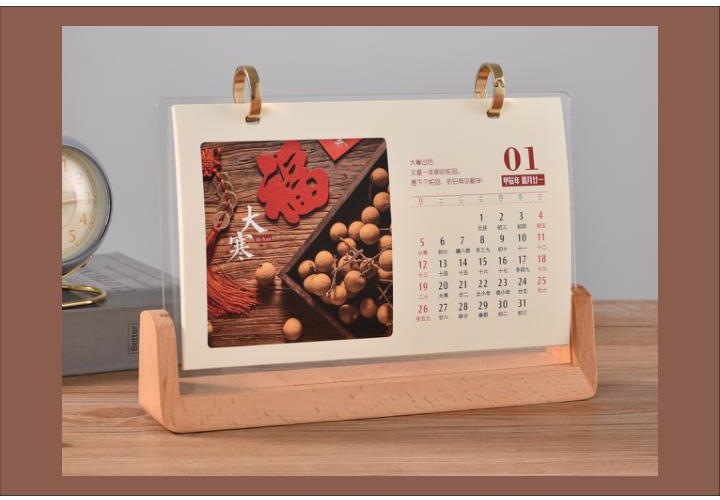 新年木质台历马年创意简约实木底座台历公司企业办公桌面摆件日历