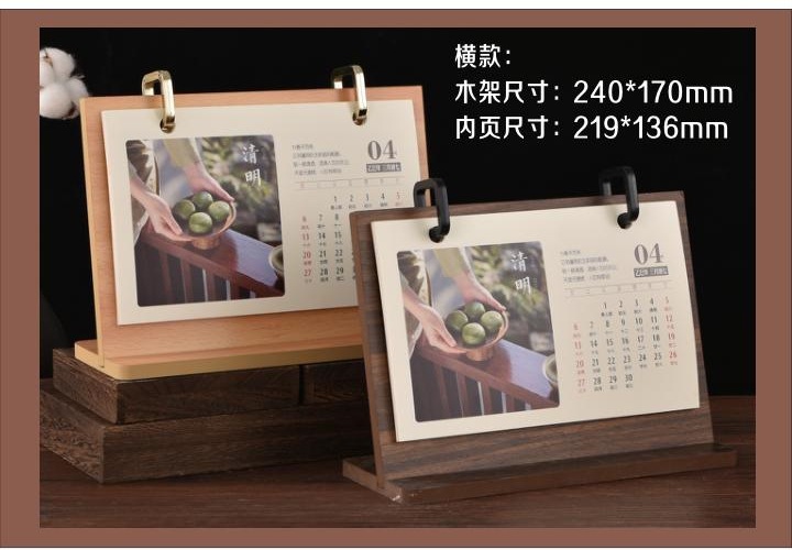 2026马年日历桌面摆件创意简约木质相框小台历定制高端万年历现货