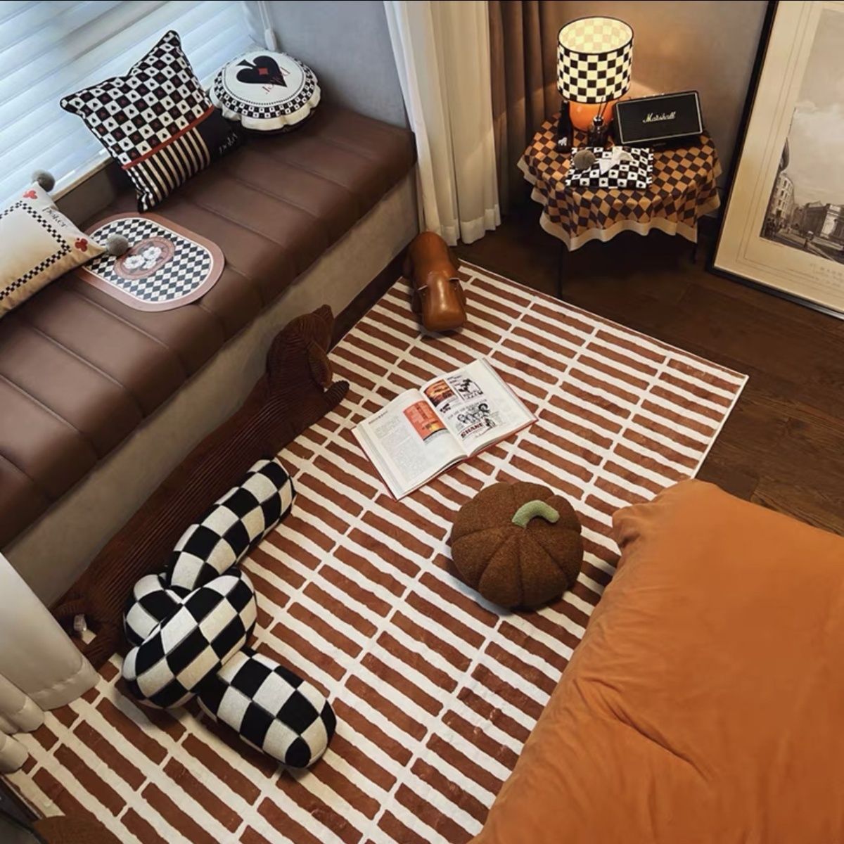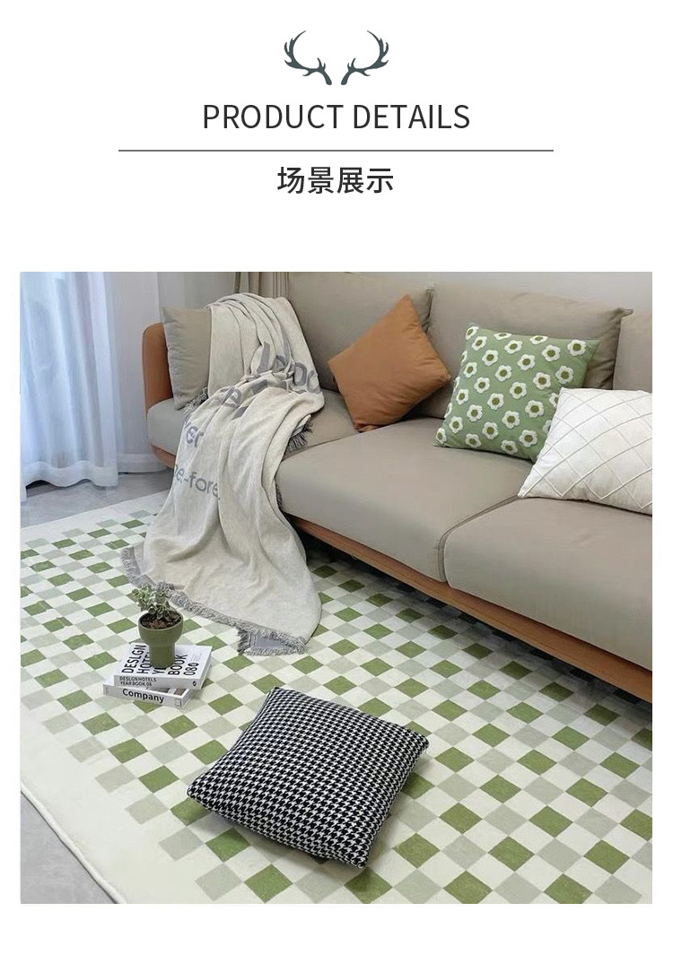 中古风客厅地毯复古千鸟格轻奢高级感南洋风电竞房无甲醛防滑地垫