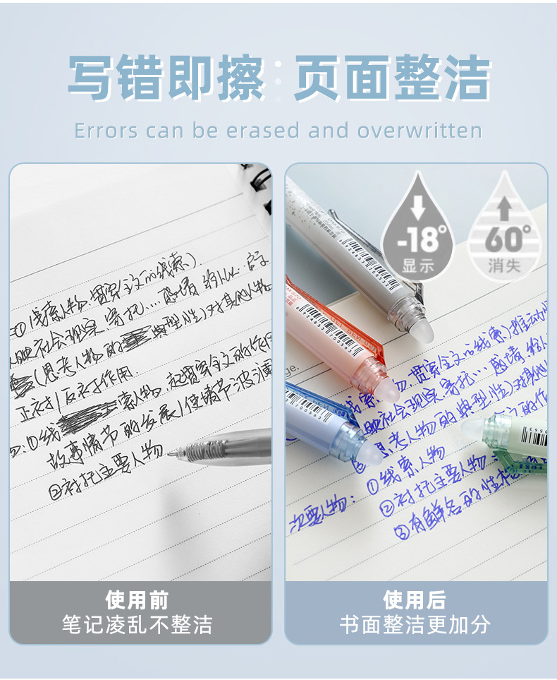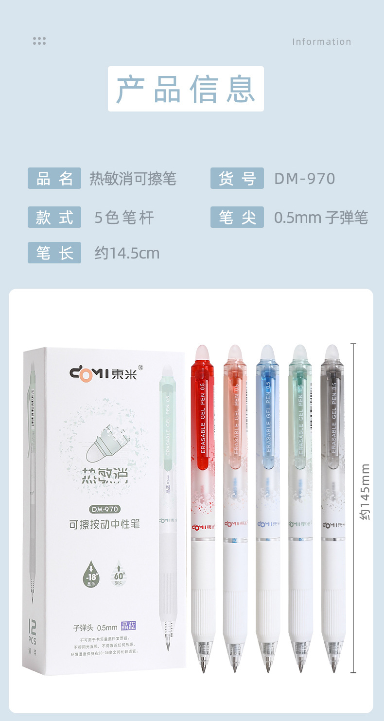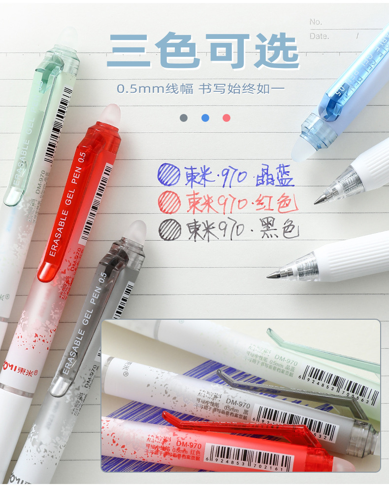 東米970熱消去式ゲルインクペン、高品質、問題修正可能、0.5mm弾丸型、学生向け