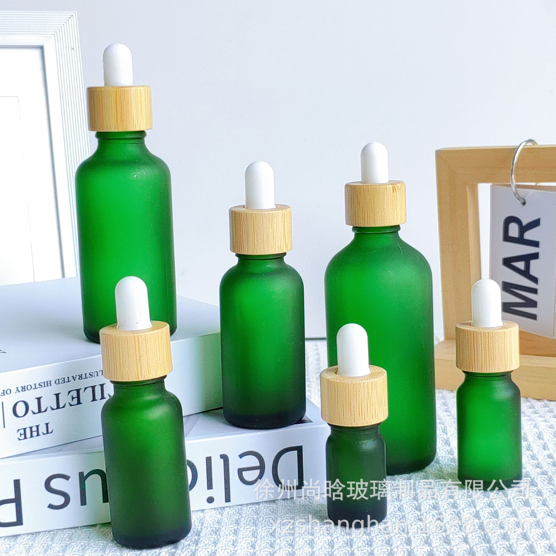 5-100ml蒙砂ガラス竹木蓋精油瓶竹木輪滴管瓶精華液瓶化粧品分注瓶