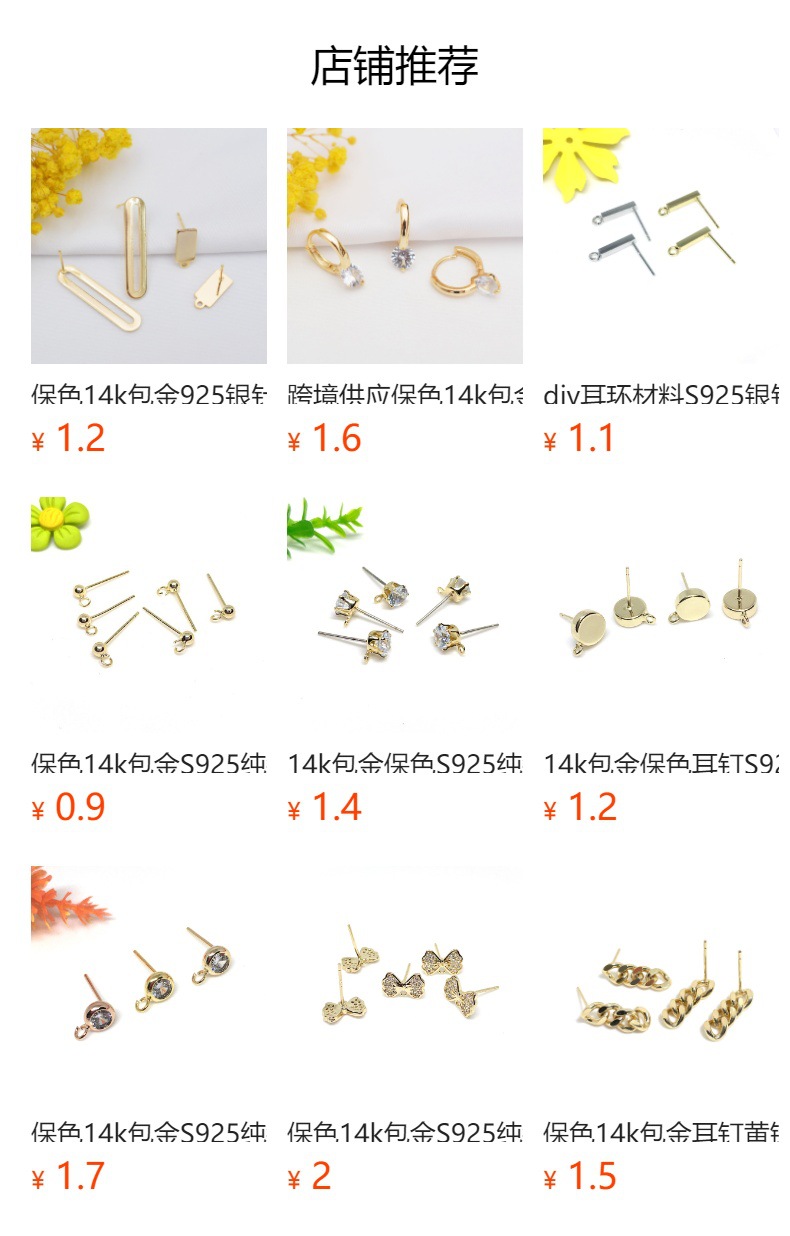 保色14k包金S925純銀針星皇冠ピアス部品diy手作り真珠イヤリング材料卸売り