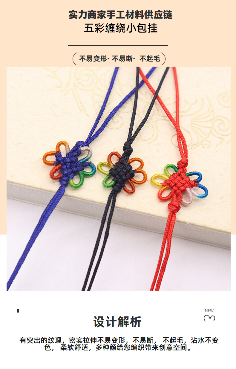 六耳五彩花结手工中国结挂绳DIY书签吊坠配件彩色编织绳饰
