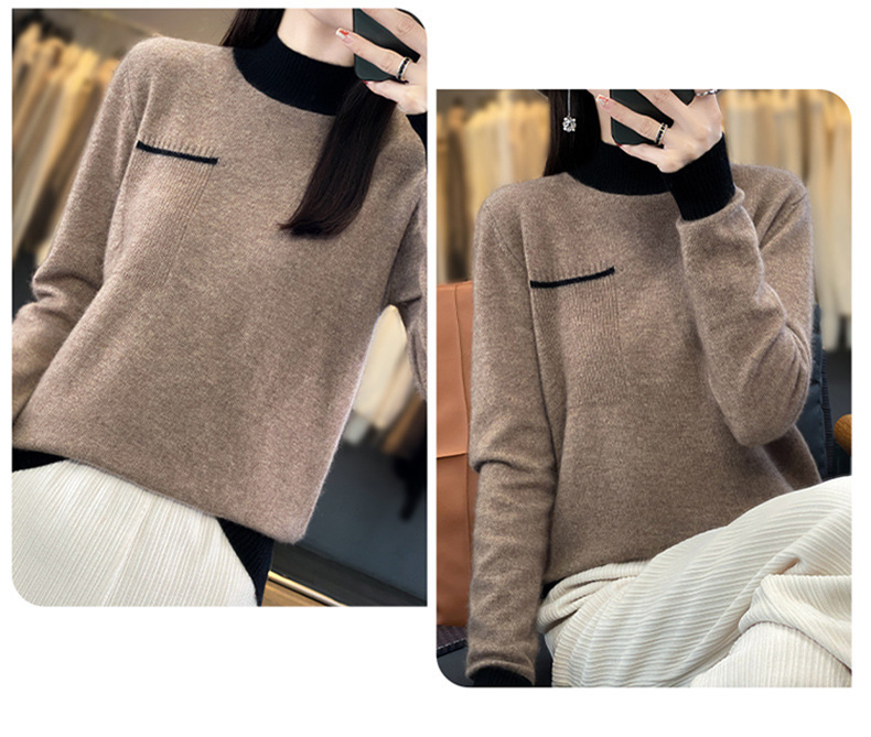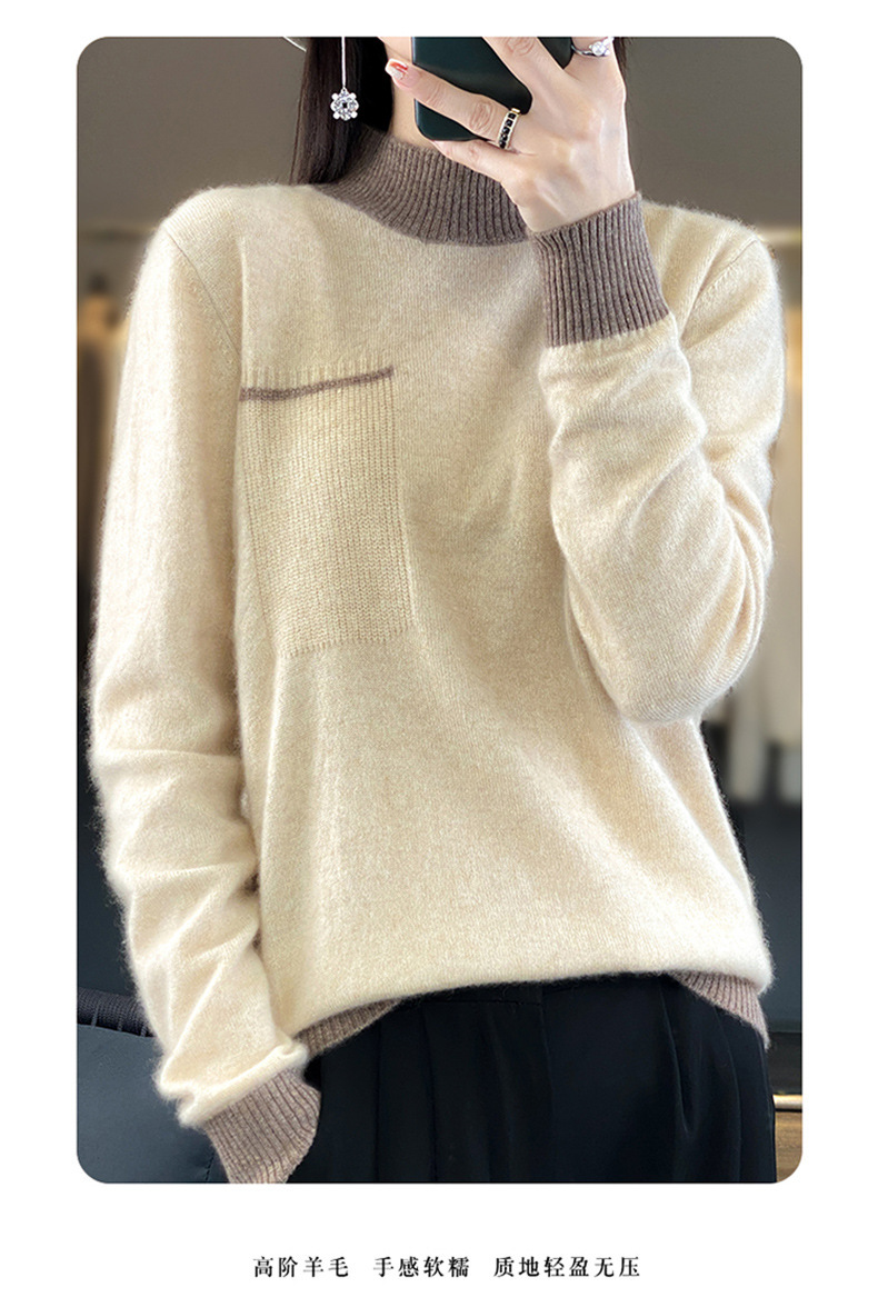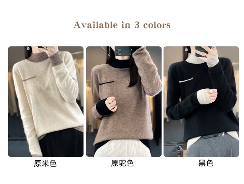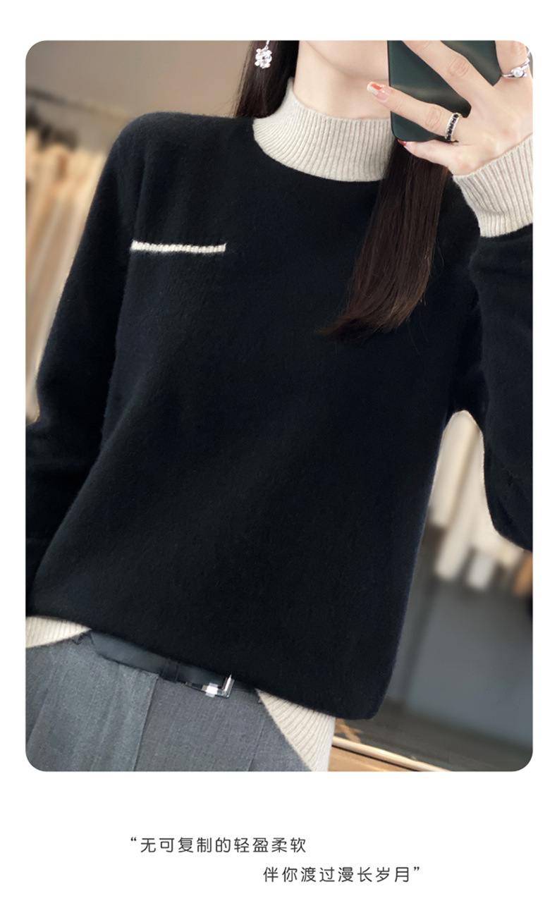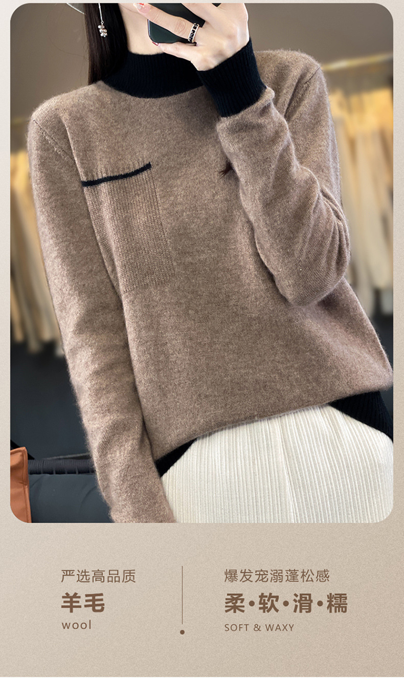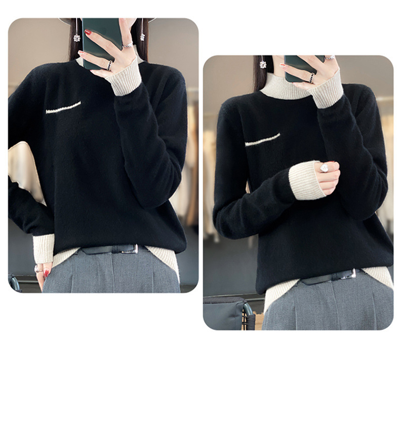 卸売 2024 秋と冬の新しいウール女性ハーフハイカラー底シャツセーター無地ニットウェア婦人服プラスサイズ