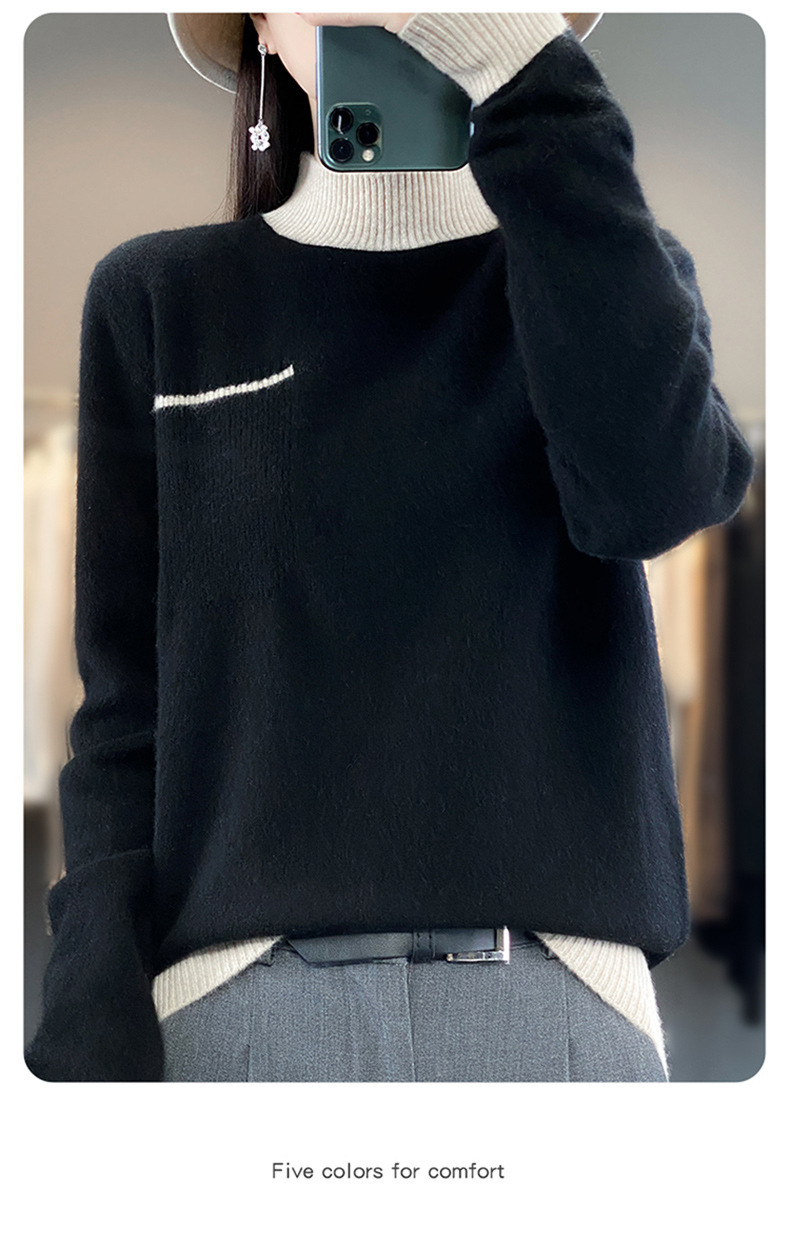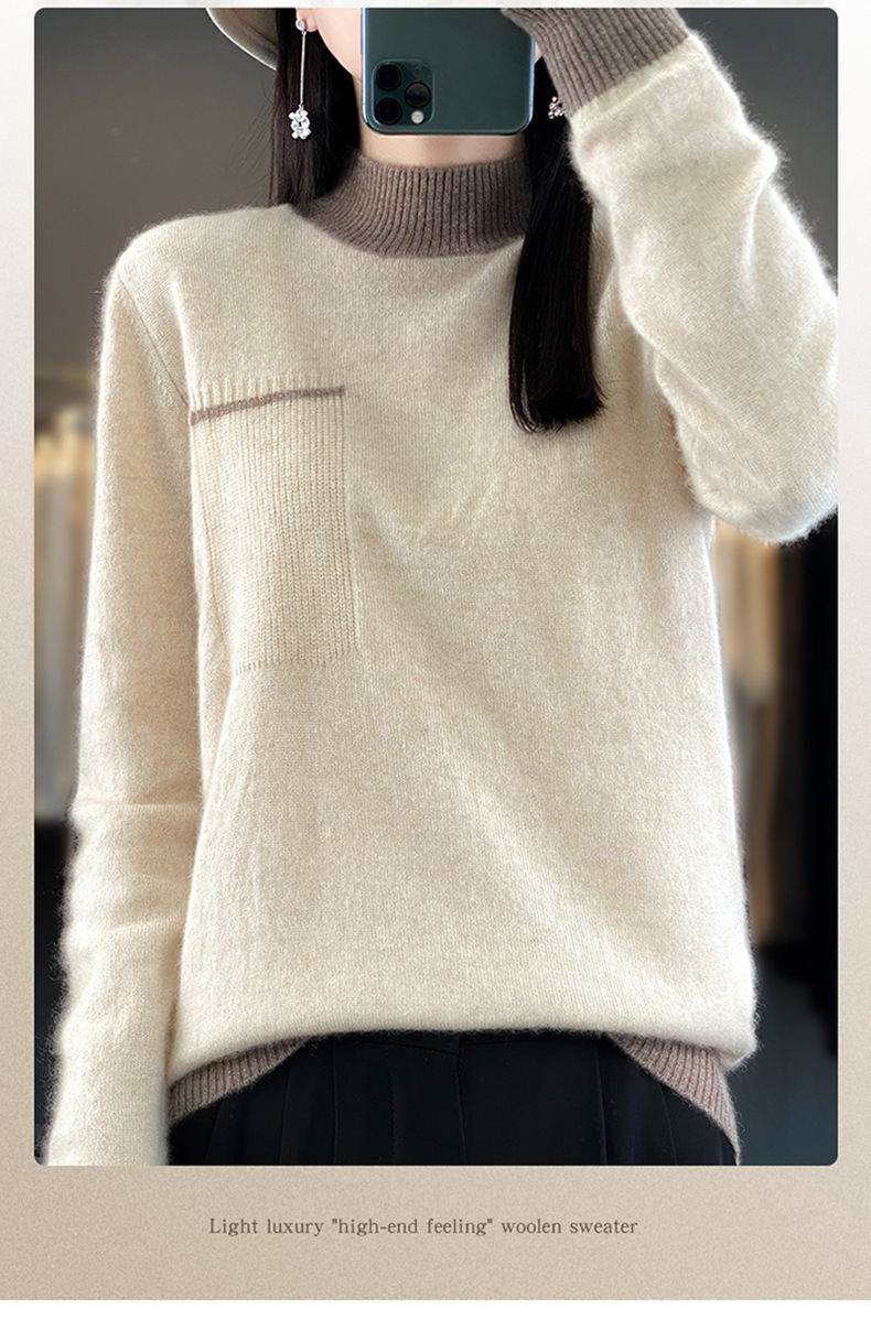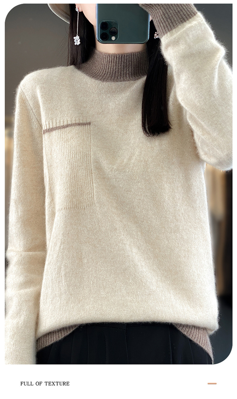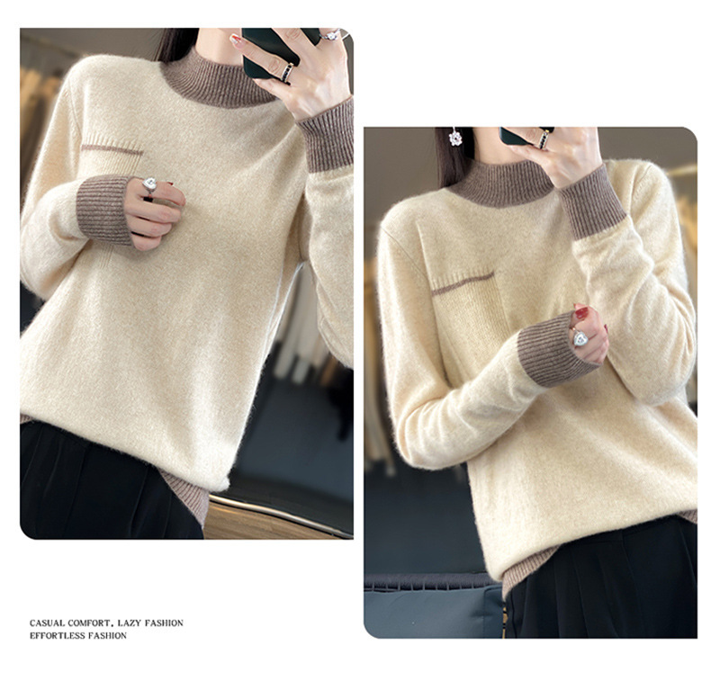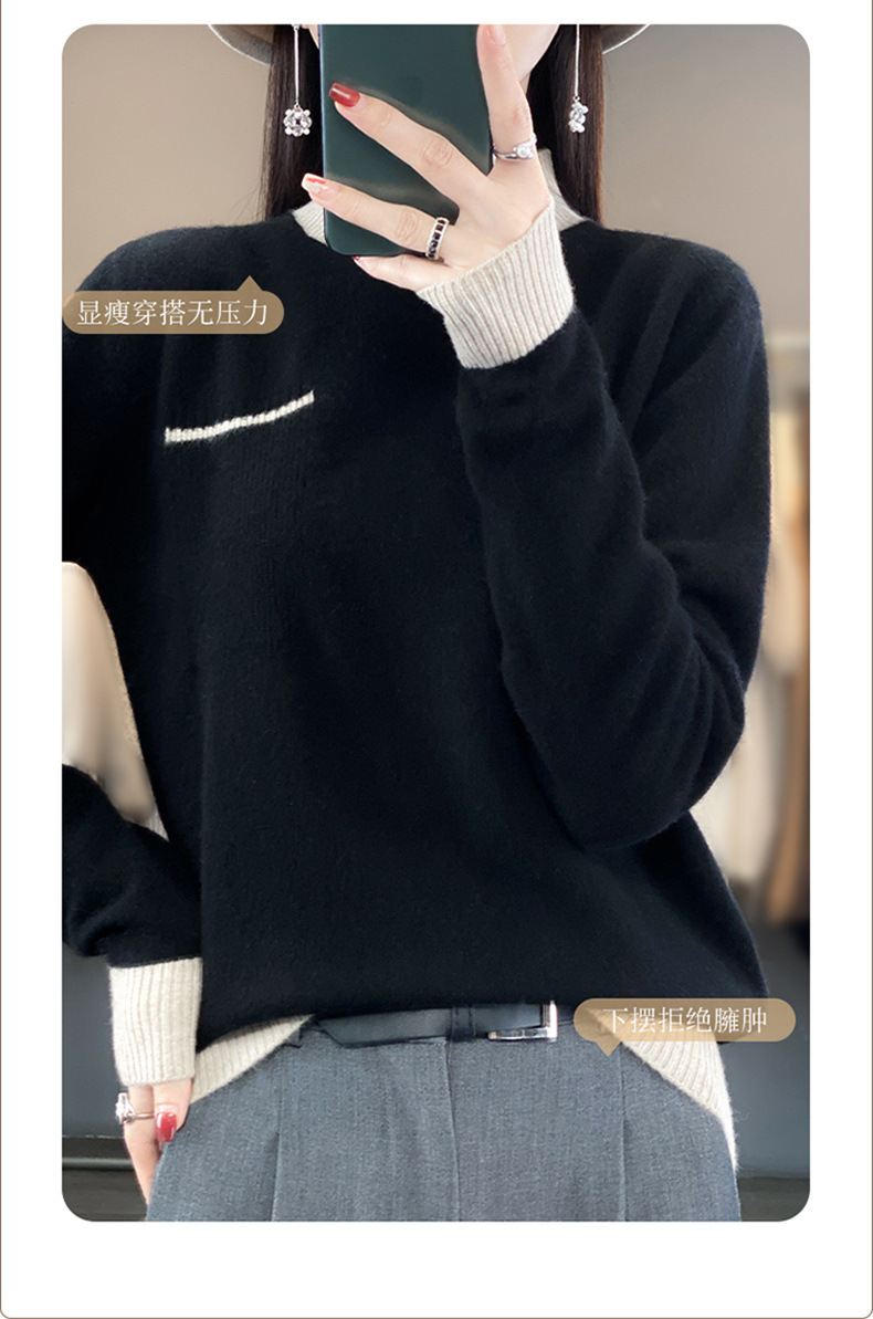 卸売 2024 秋と冬の新しいウール女性ハーフハイカラー底シャツセーター無地ニットウェア婦人服プラスサイズ