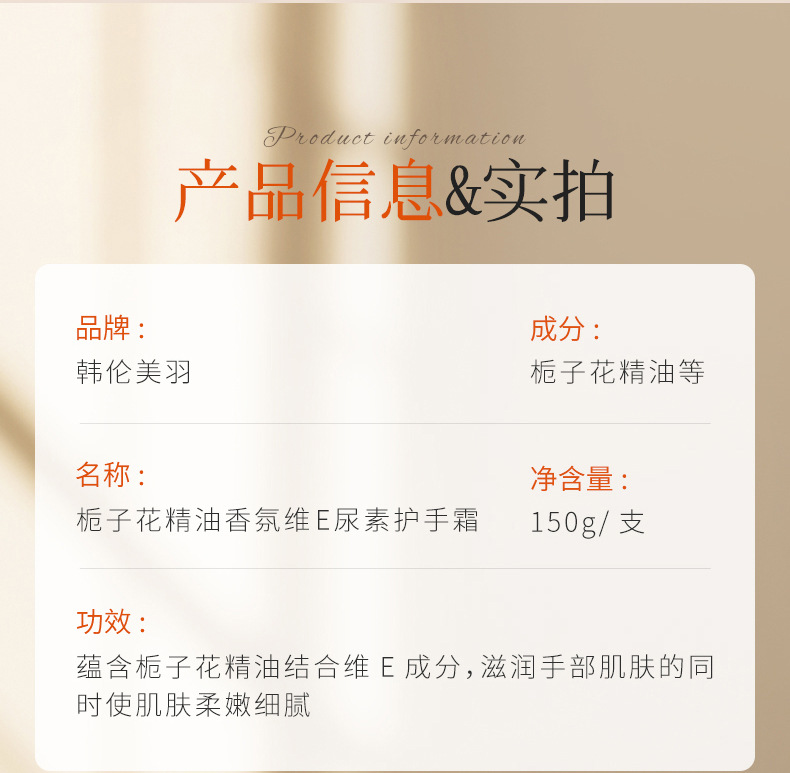 韓倫美羽クチナシ花精油アロマ維e尿素ハンドクリーム潤い保湿乾燥防止ハンドクリーム