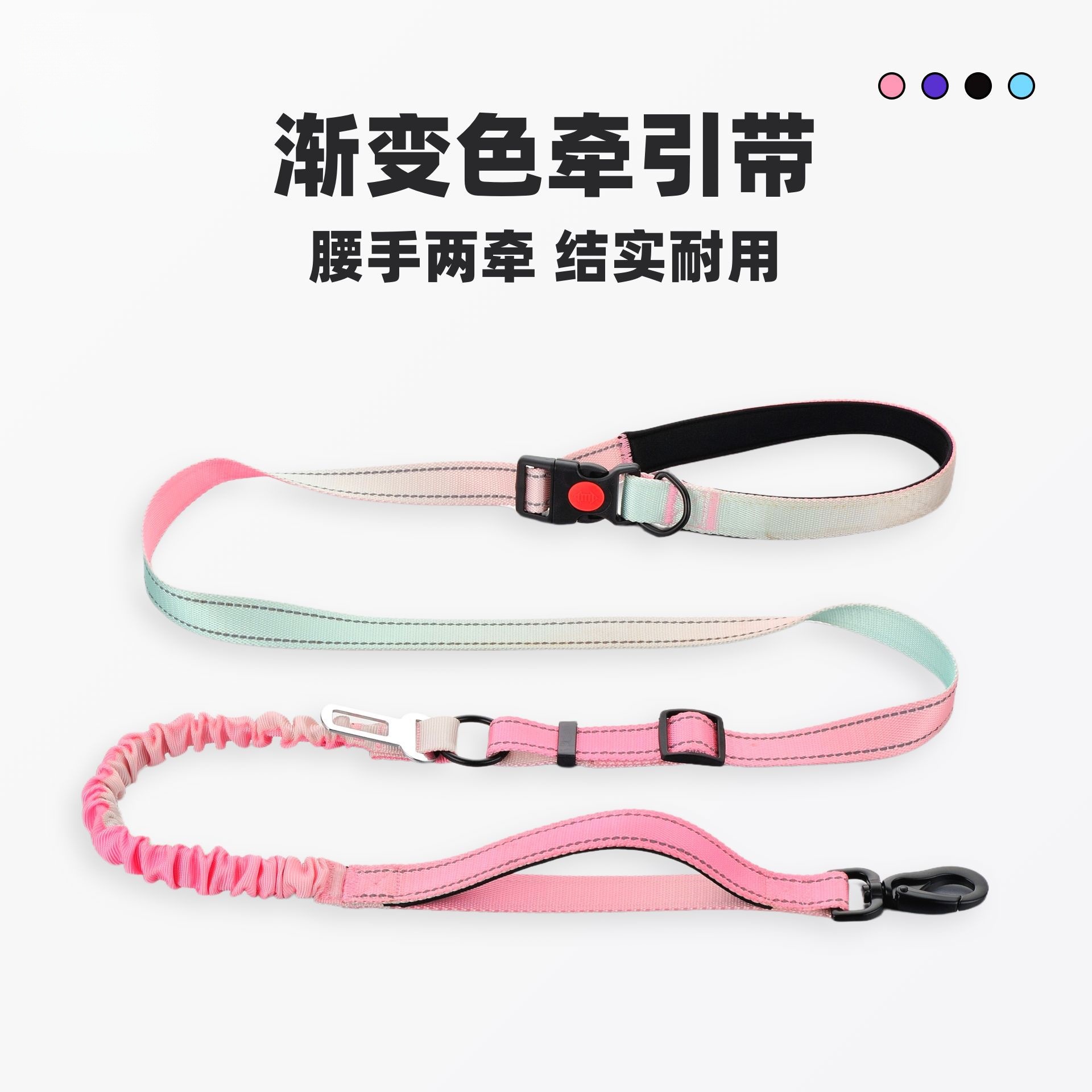 宠物狗狗渐变彩色背带牵引绳弹力伸缩遛狗外出专用遛狗绳小狗用品