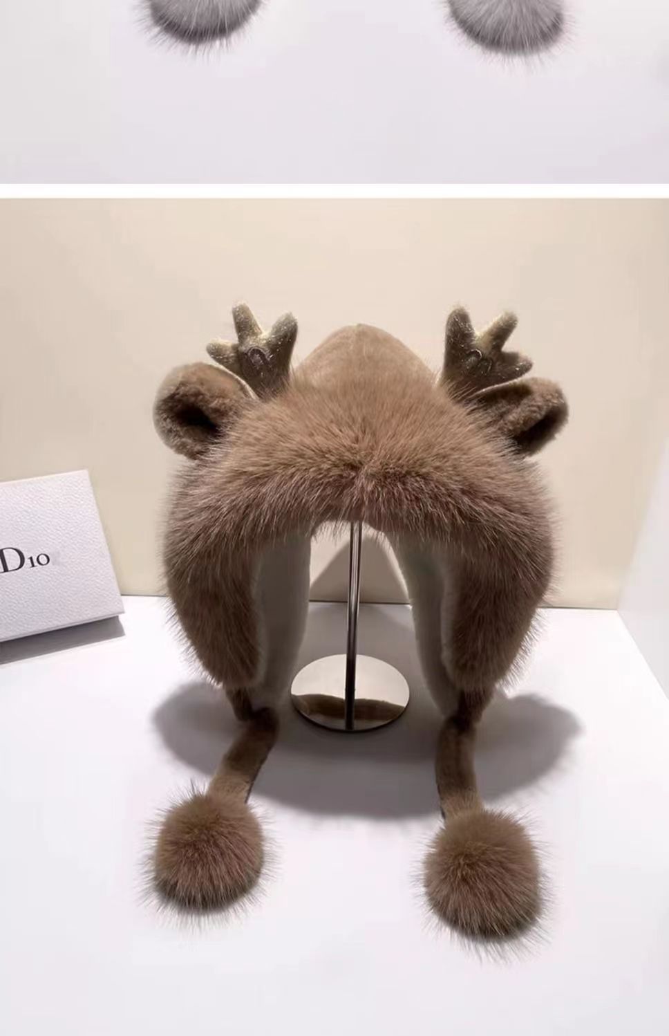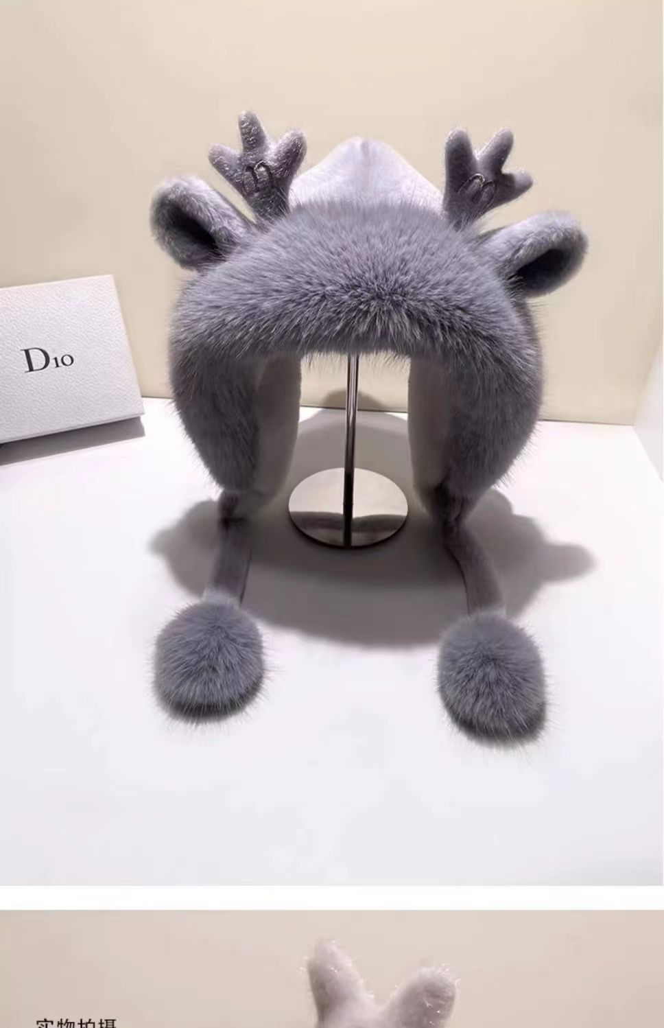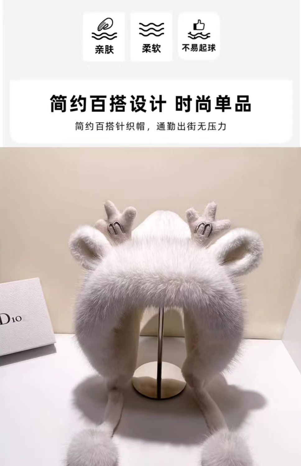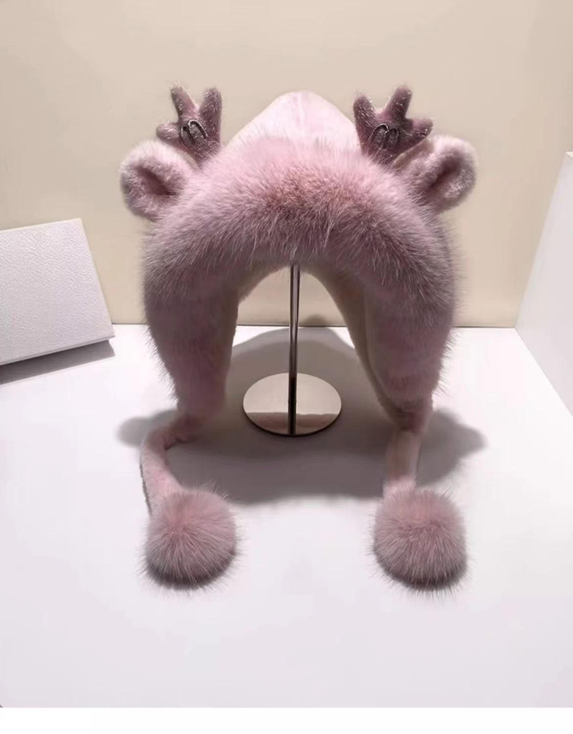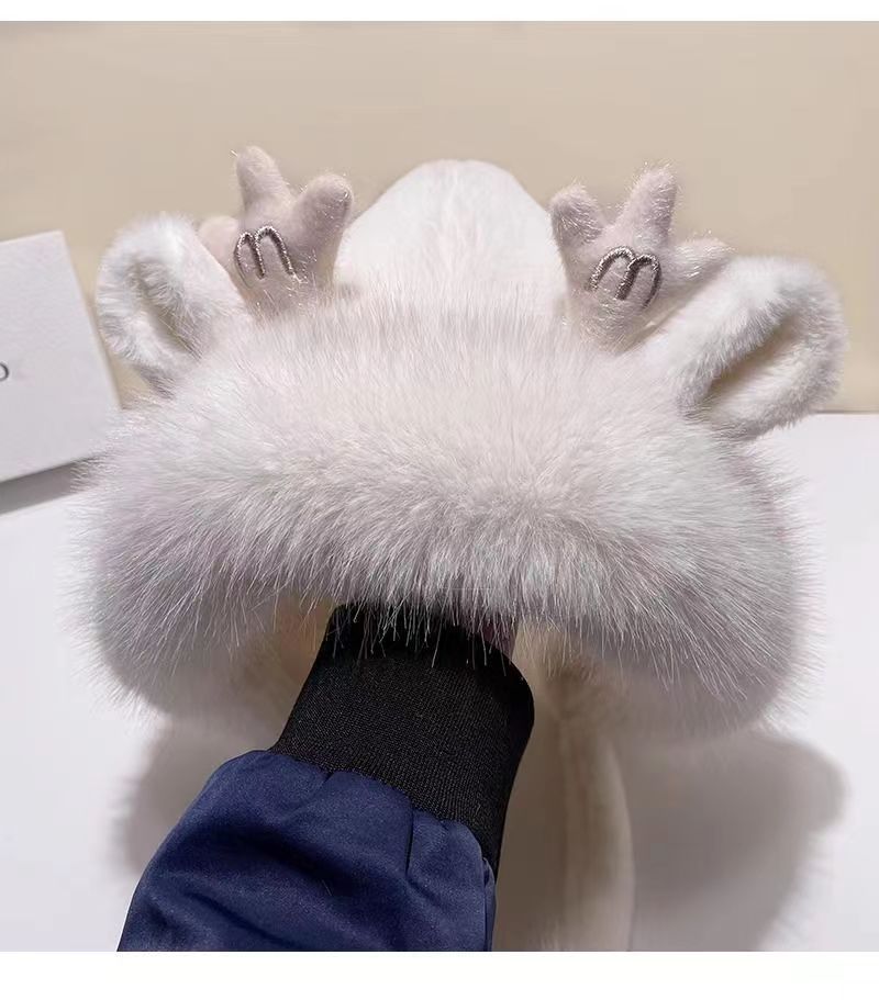 新款鹿角毛绒加绒加厚保暖骑车防寒毛球护耳连体帽冬季可爱帽子女