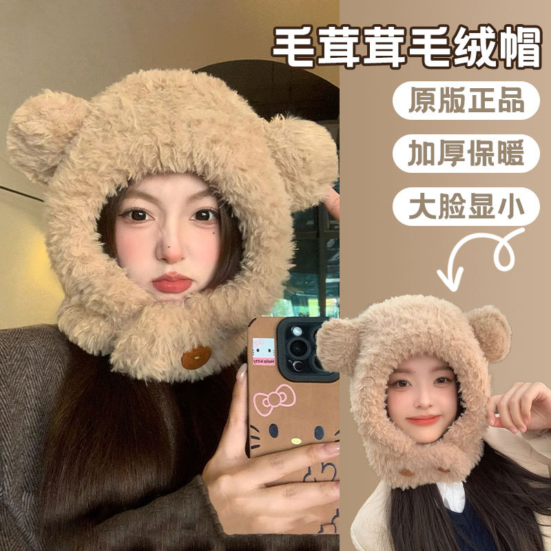 可爱小熊毛绒帽子女冬季毛茸茸加厚保暖帽骑行防风防寒护耳雷锋帽