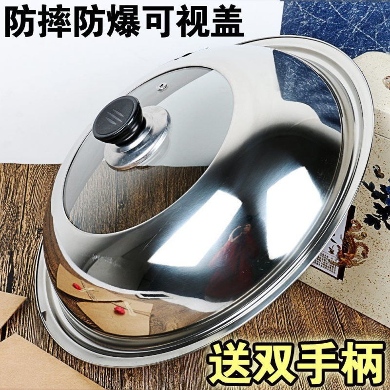 鍋蓋防爆ガラス可視蓋食品級非磁性ステンレス蓋フライパン平底大鍋蓋30cm-40cm