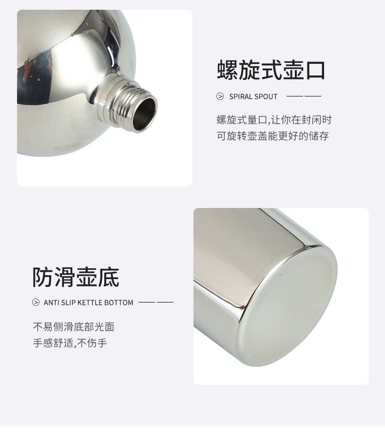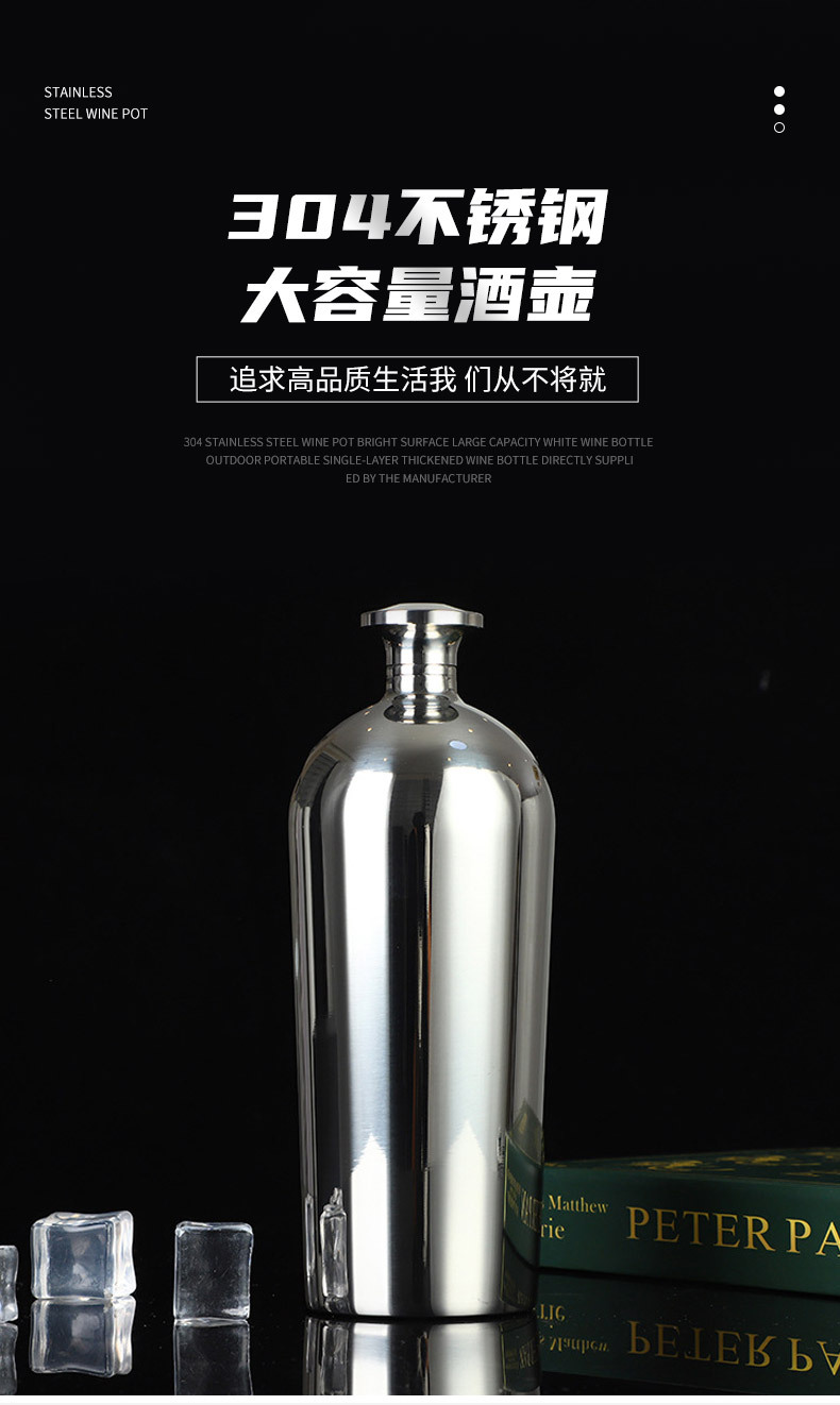 304ステンレス鋼酒瓶、光沢仕上げ、大容量酒瓶、屋外携帯用、単層厚型、小口酒瓶、卸売