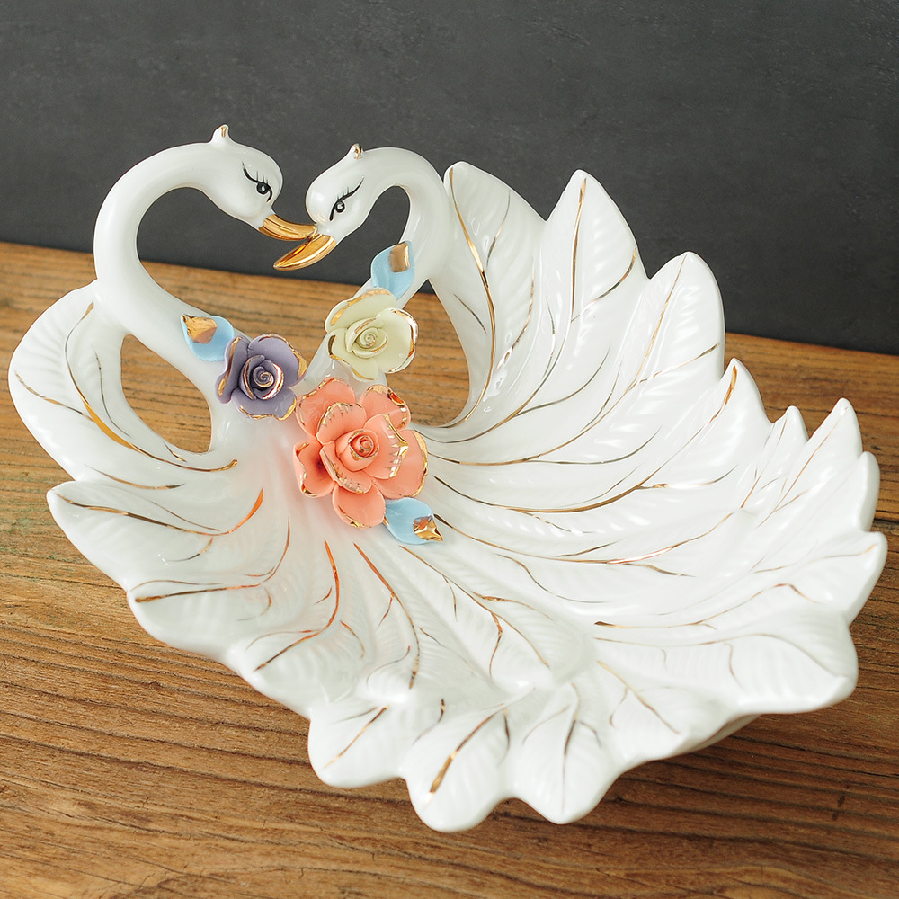 白鳥の果物の皿の陶磁器の家庭の装飾品の工場は直接販売してアイデアの客間のお茶のテーブルの上で間食の果物の皿を飾ります。