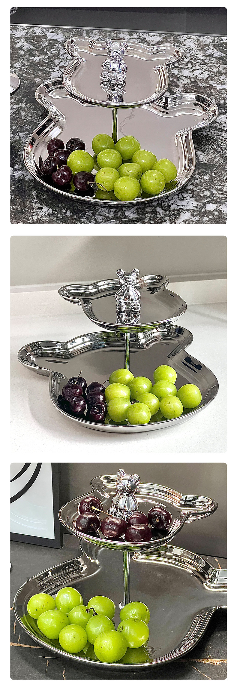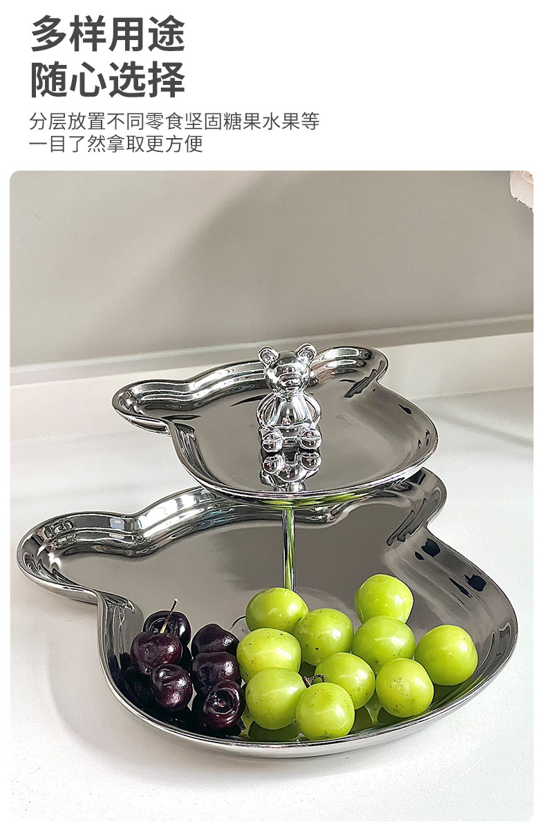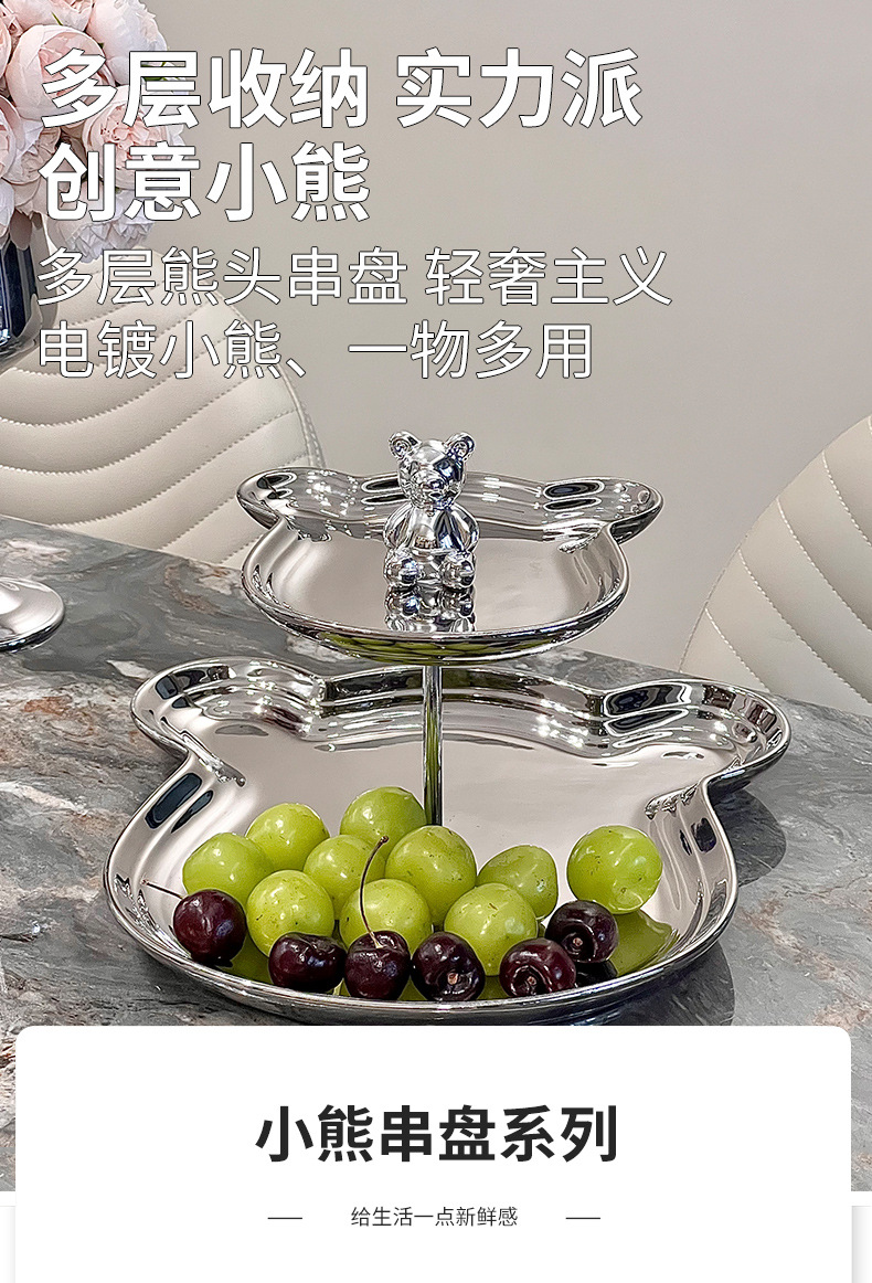 軽豪華陶磁器メッキ熊頭果盤高颜値客間茶何装飾菓子盤分格甜品台展示棚