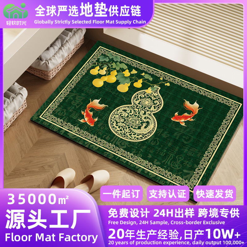 入户门步步生莲绿色开运风水地垫蹭脚垫进门垫耐脏地毯防滑易打理