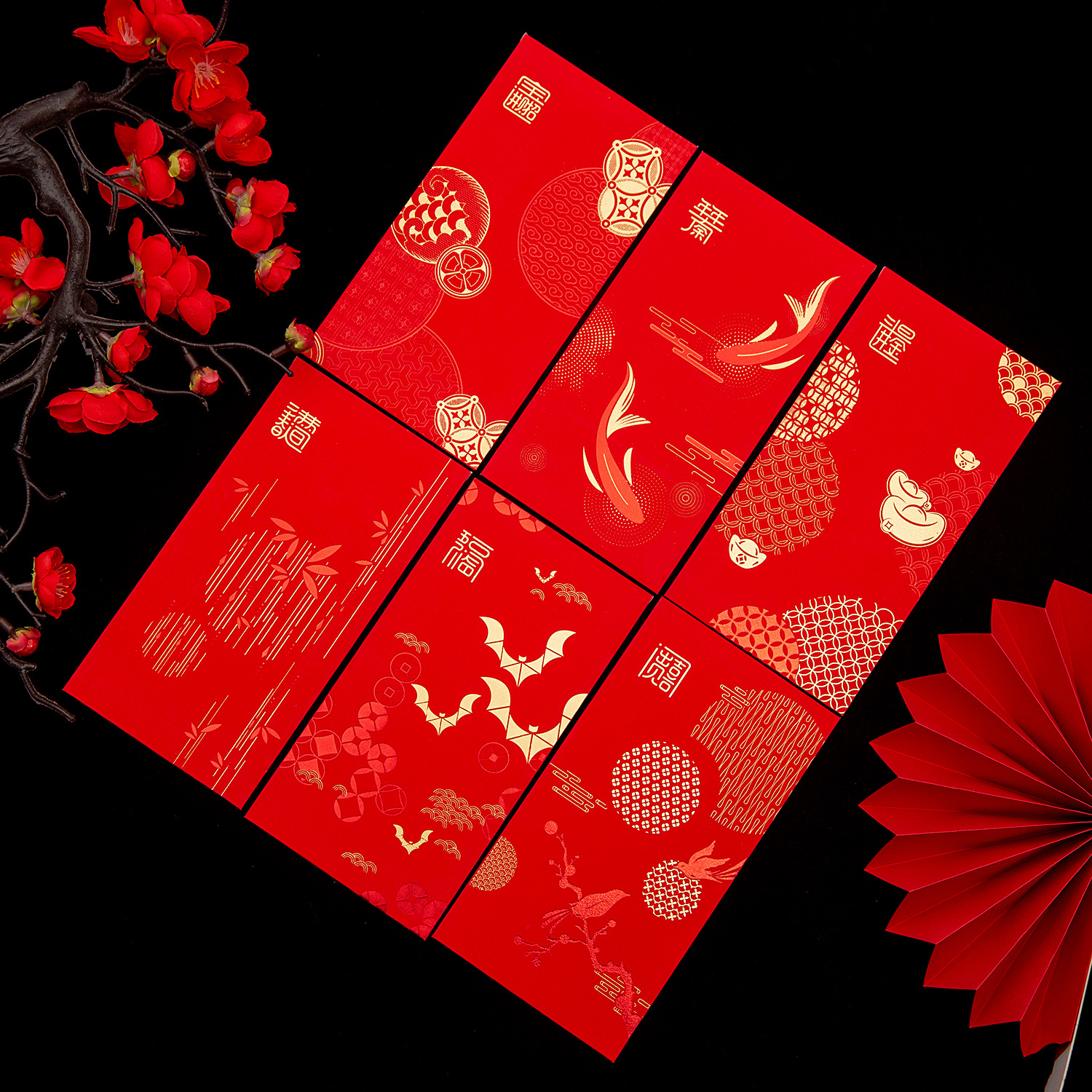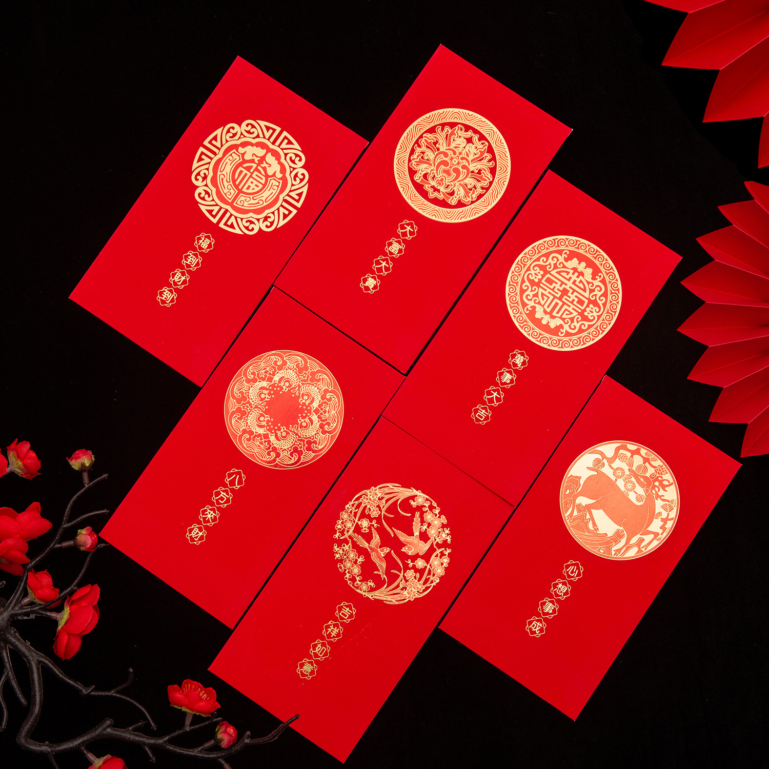 越境卸売アート紙製超感彩印刷箔押し紅封筒、ロゴ入り春節中国風紅封筒袋