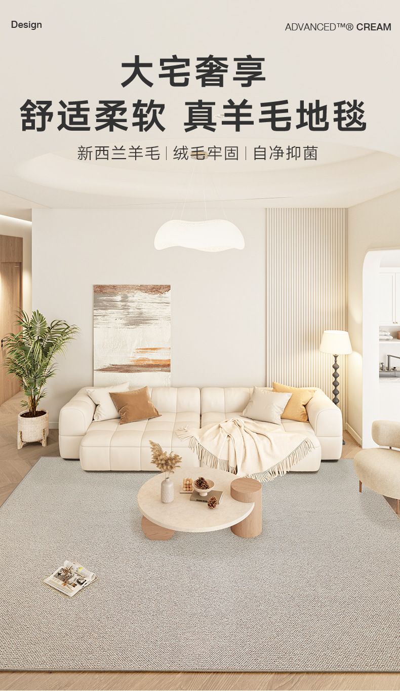 奶油风家用客厅地毯大面积全铺坐垫轻奢高级感耐脏沙发垫床边垫